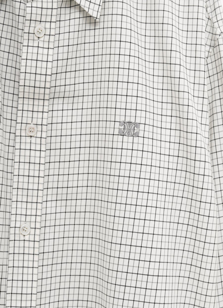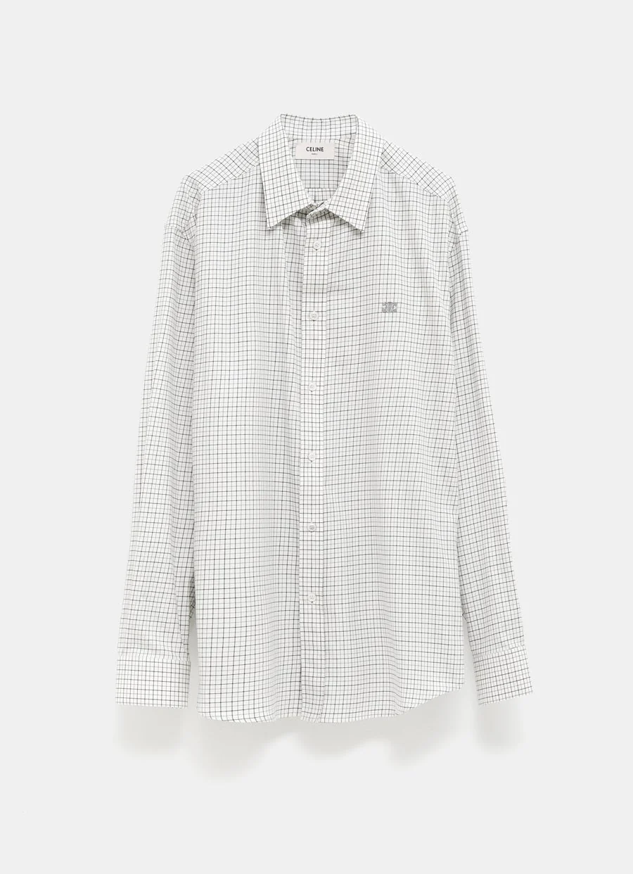 Camisa de Celine en sarga de algodón a cuadros con cuello drugstore, puños abotonados, cierre con botones en la parte delantera, bajo redondeado y bordado Triomphe en la parte delantera. Corte holgado. Hecha en Italia. Talla normal, elige tu talla habitual. Tallaje italiano para hombre.