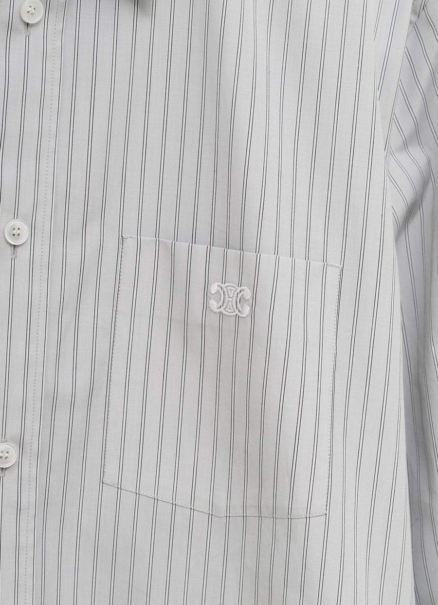 Camisa de Celine en popelina de algodón a rayas con cuello drugstore con ballenas, puños abotonados, cierre con botones en la parte delantera, bajo redondeado y bordado Triomphe en la parte delantera. Corte holgado. Hecha en Italia. Talla normal, elige tu talla habitual. Tallaje italiano para hombre.