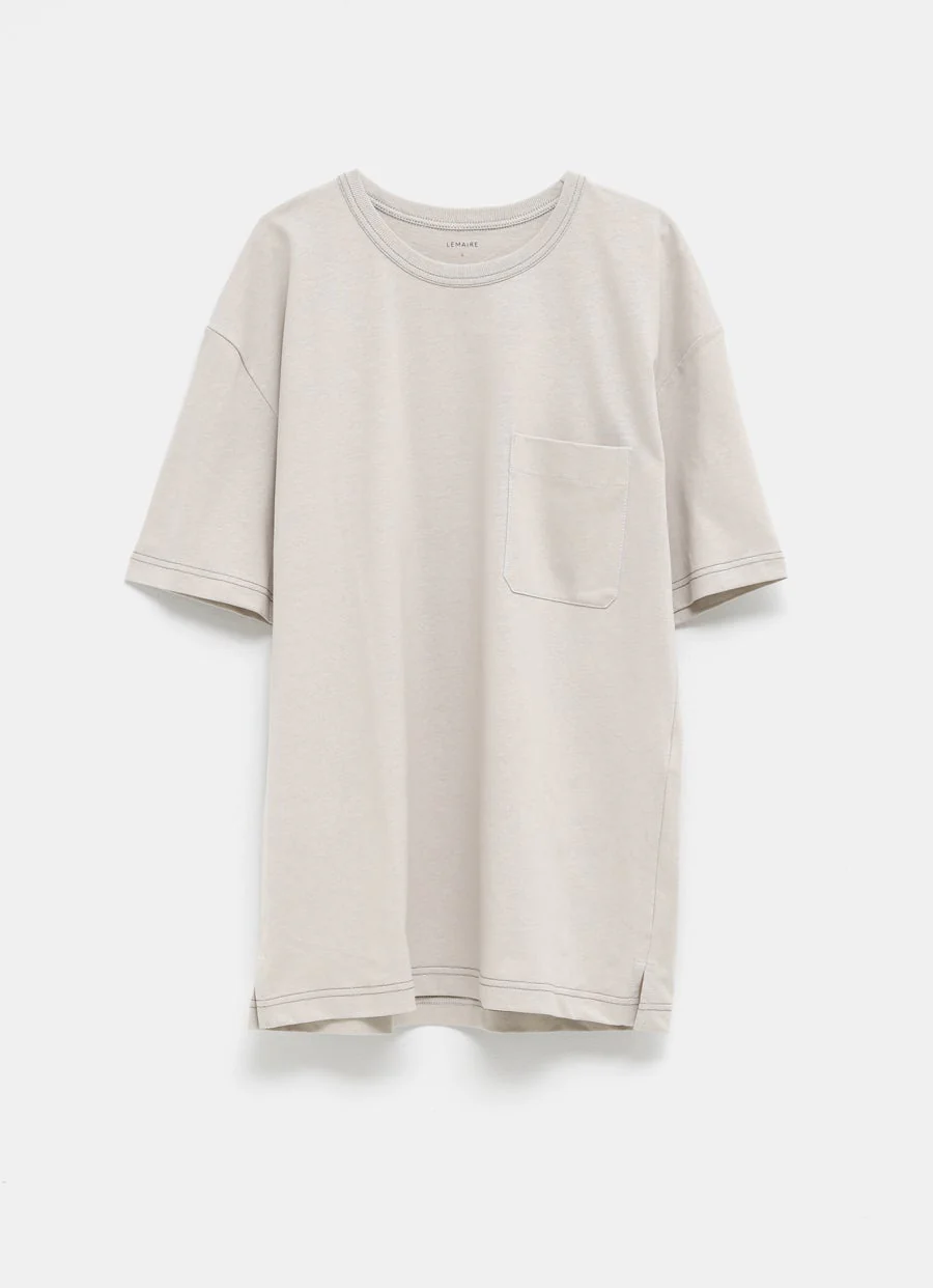 Camiseta de Lemaire en jersey fluido mezcla de algodón y lino. Con cuello redondo, bolsillo en el pecho y manga corta. Hecha en Portugal. Corte suelto y boxy. Talla normal, elige tu talla habitual. Tallaje estándar para hombre.