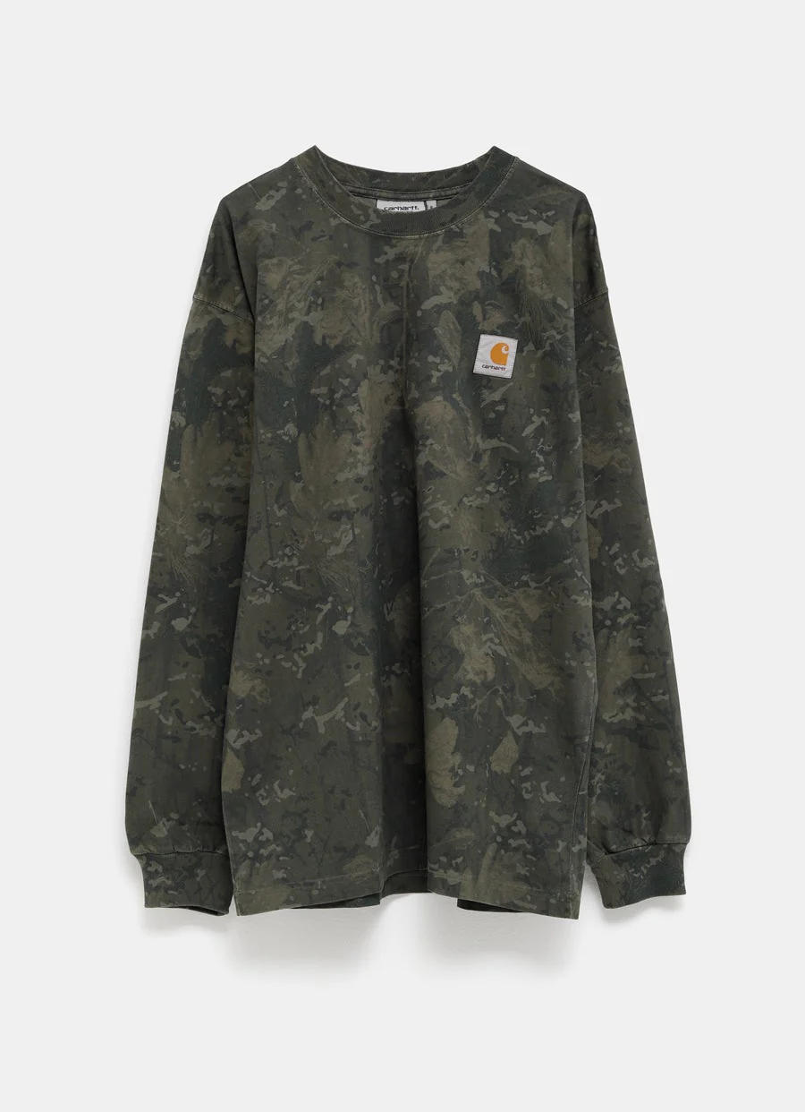 Camiseta de Carhartt WIP en algodón de peso medio con estampado de camuflaje, cuello redondo, manga larga, elásticos de canalé y etiqueta con logo. Corte holgado. Talla normal, elige tu talla habitual. Tallaje estándar para hombre.
