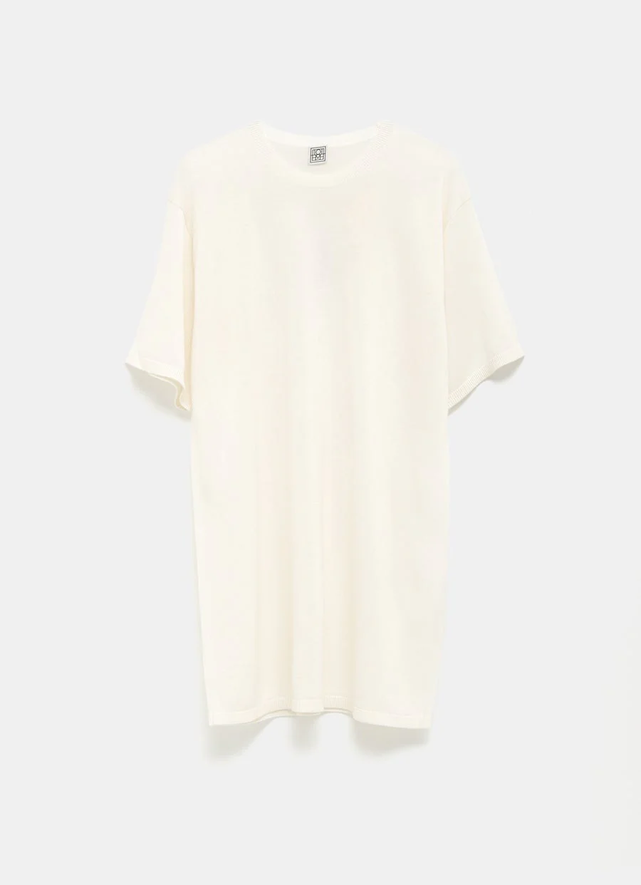 Camiseta de TOTEME en jersey elástico, compacto. Con manga corta ancha y corte oversize. Talla normal, elige tu talla habitual. Tallaje estándar para mujer.