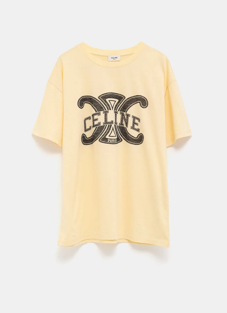Camiseta de Celine con estampado Triomphe en el pecho y cuello redondo de canalé. Hecha en Italia. Corte holgado. Talla normal, elige tu talla habitual. Tallaje estándar para hombre.