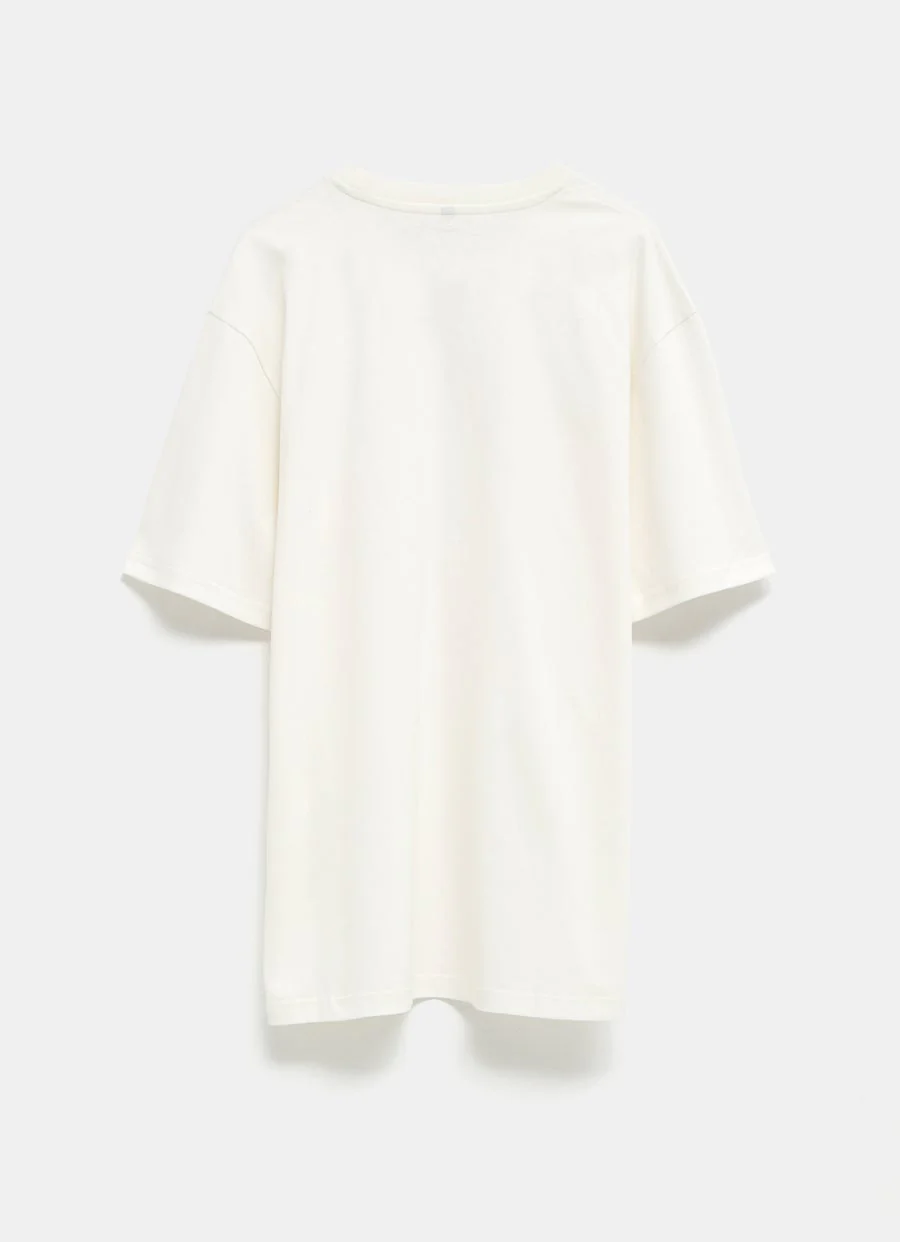 Camiseta Flore Flore en algodón orgánico ligero y semitran sparente, con cuello redondo, manga larga y silueta alargada. Corte ajustado. Hecha en Portugal. Talla normal, elige tu talla habitual. Tallaje estándar para mujer.