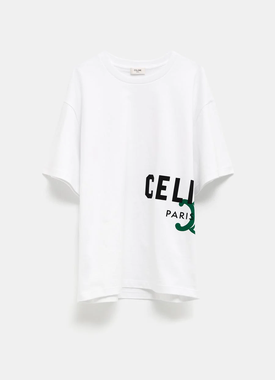 Camiseta de Celine en jersey de algodón con estampado Celine Paris Triomphe, cuello redondo y ribete de canalé. Corte holgado. Hecho en Italia. Talla normal, elige tu talla habitual. Tallaje estándar para hombre.