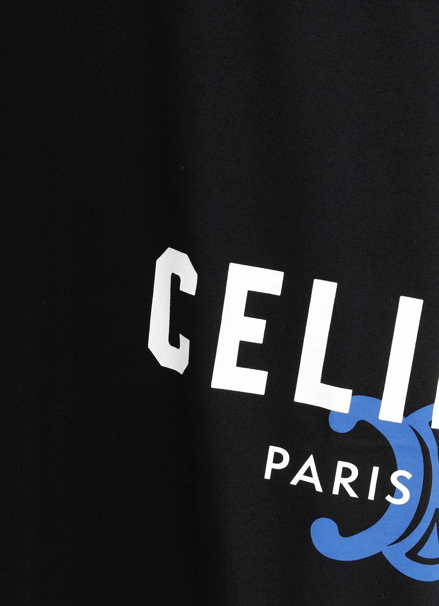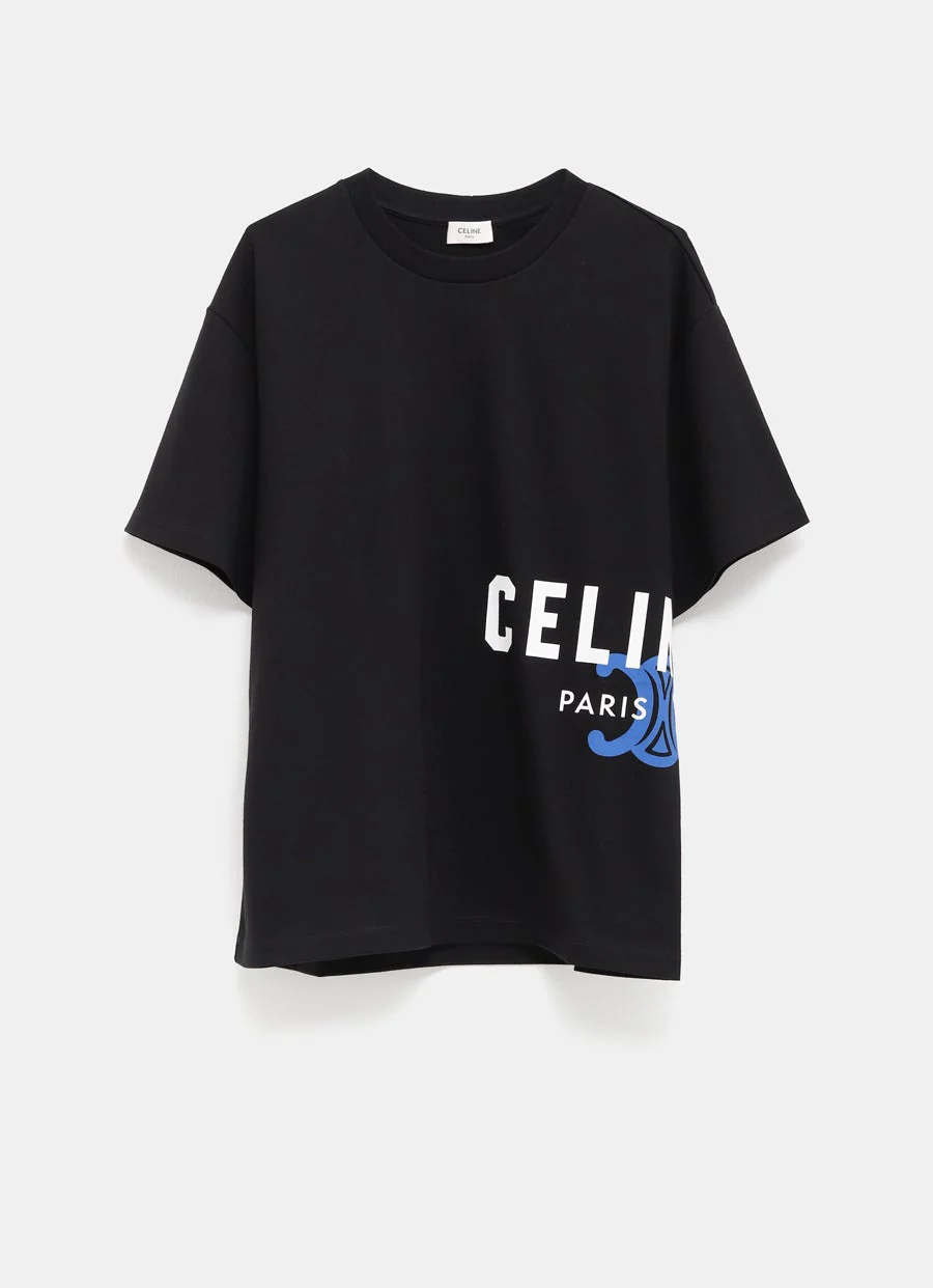 Camiseta de Celine en jersey de algodón con estampado Celine Paris Triomphe, cuello redondo y ribete de canalé. Corte holgado. Hecho en Italia. Talla normal, elige tu talla habitual. Tallaje estándar para hombre.