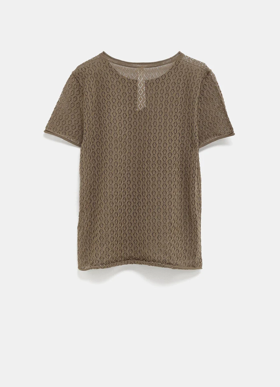 Camiseta de manga corta de Lauren Manoogian semitransparente en punto calado con cuello, bajo, y puños enrollados. Corte ajustado. Hecha en Perú. Talla normal, elige tu talla habitual. Tallaje numérico para mujer.
