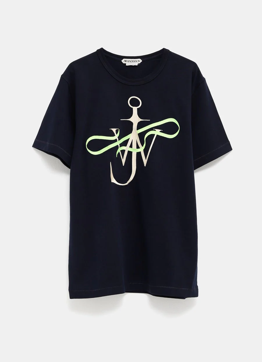 Camiseta de JW Anderson en jersey de algodón con manga corta, cuello redondo y motivo bordado en la parte frontal. Ajuste regular. Hecho en Portugal. Talla normal, escoge tu talla habitual. Tallaje estándar para hombre.