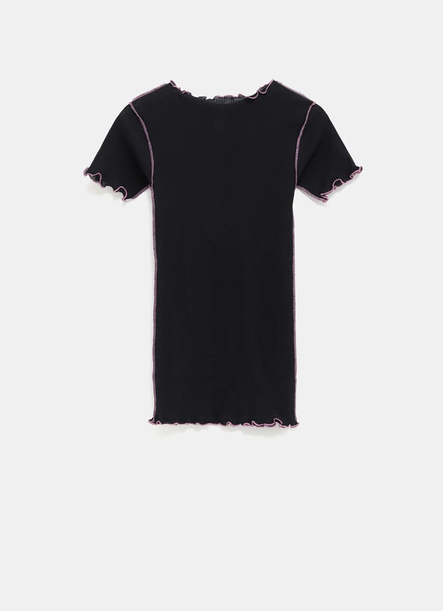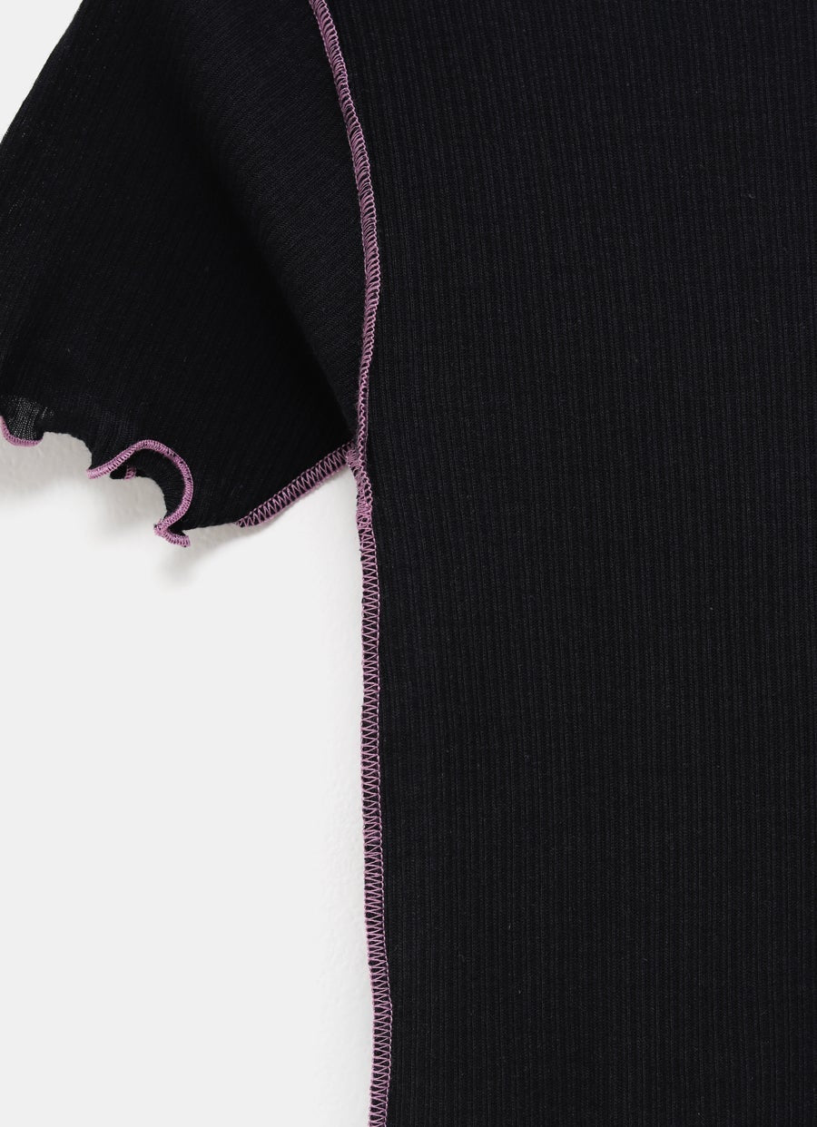Camiseta de Baserange en punto de canalé con cuello barco, costuras en contraste y remates rizados. Corte ajustado. Hecha en Portugal. Talla pequeña, elije una talla más a tu talla habitual. Tallaje estándar.