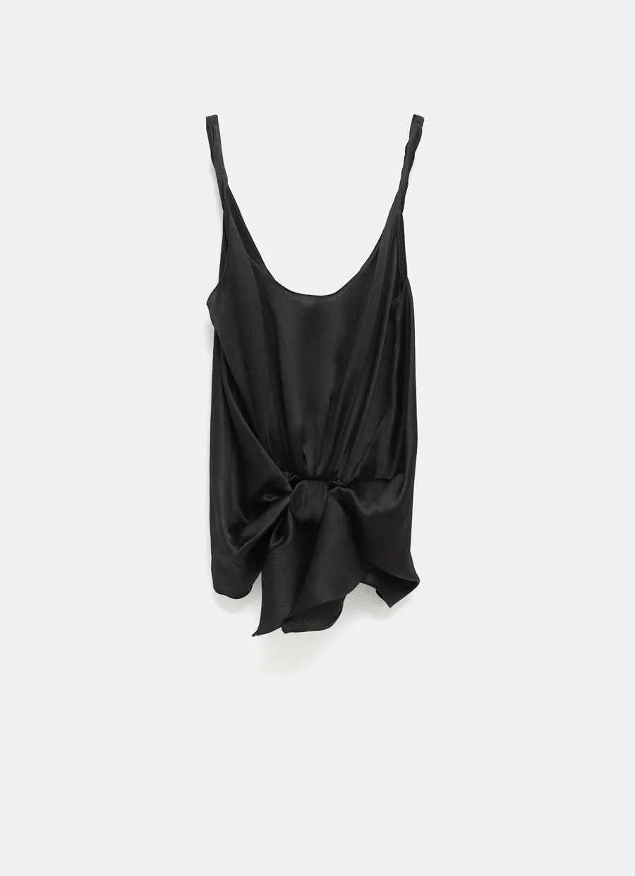 Camiseta de tirantes de JW Anderson en seda arrugada con detalle de nudo en la parte delantera. Hecho en Portugal. Talla normal, elige tu talla habitual. Tallaje Reino Unido para mujer.
