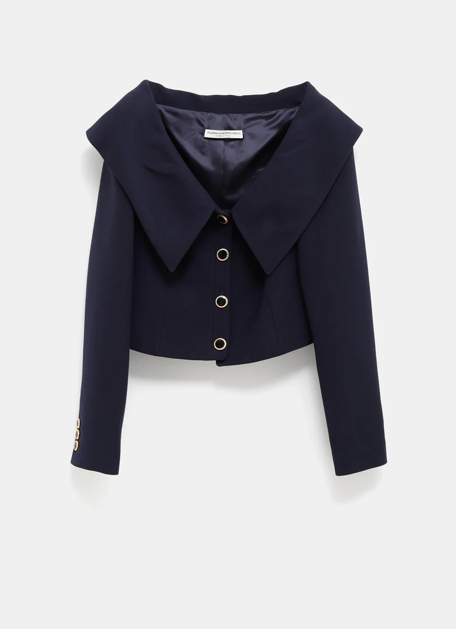 Chaqueta de Alessandra Rich con escote de hombros descubiertos, cuello oversize, puños abotonados y cierre frontal con botones. Forro de viscosa. Silueta ajustada. Hecho en Italia. Talla normal, elige tu talla habitual. Tallaje italiano.