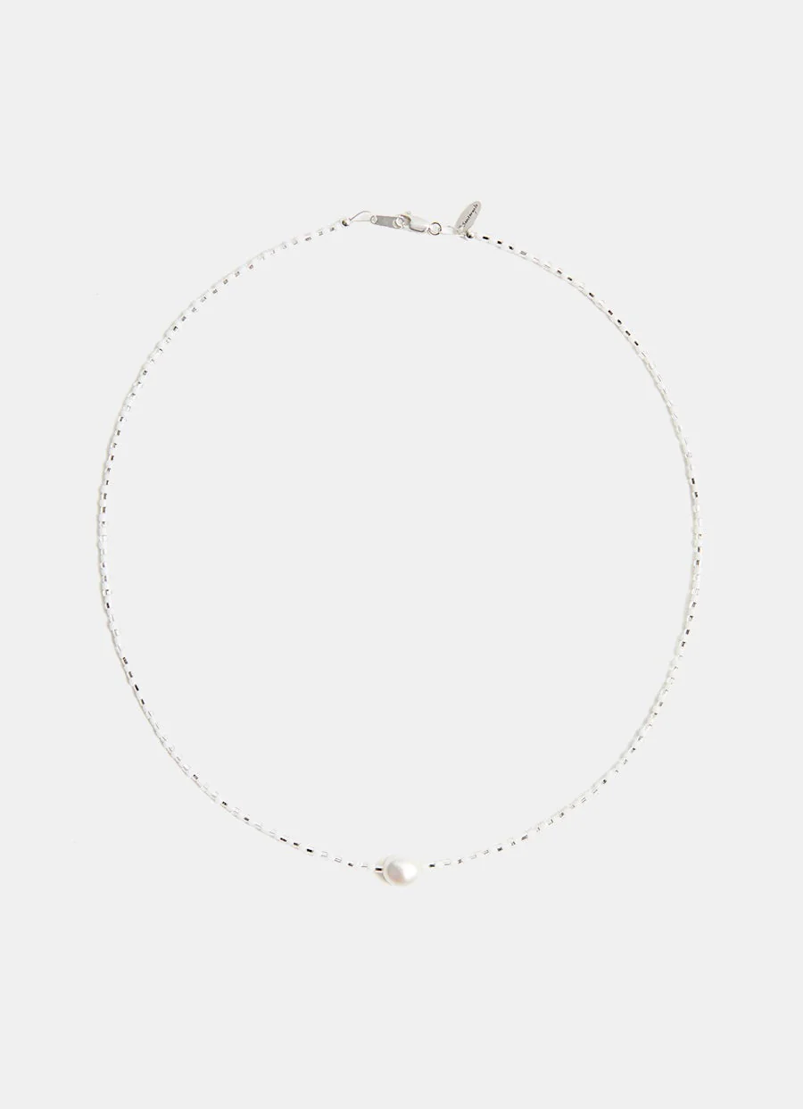 Collar de Alaïa en forma de flor, elaborado artesanalmente en cuero de cordero, con correa ajustable y cierre de hebilla dorada. Hecho en Italia. Largo total de la tira: 40 cm.