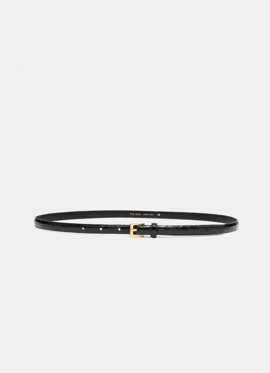 Cintur贸n de The Row en piel de cocodrilo texturizada con hebilla met谩lica y trabilla fija. Hecho en Italia. Largo total indicado en cm en el selector de tallas. Ancho: 1cm aprox.