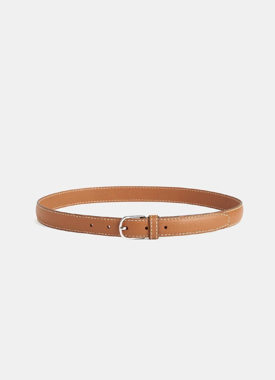 Cintur贸n de TOTEME en piel de vacuno granulada, con pespuntes en contraste, hebilla plateada y cara interior suave. Hecho en Italia. Medidas: 2.5 cm de ancho. Longitud total en el selector de talla, (mostrado en cm)