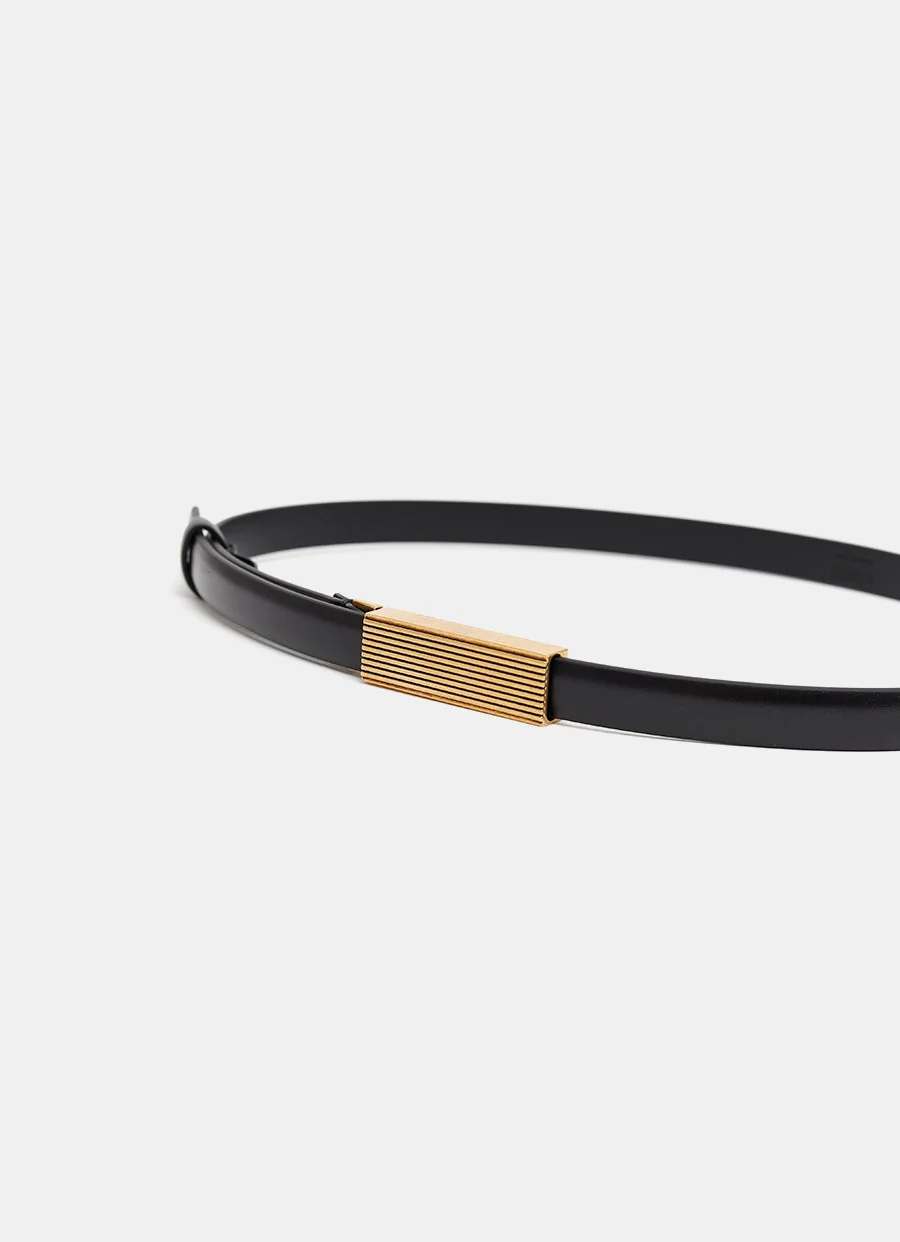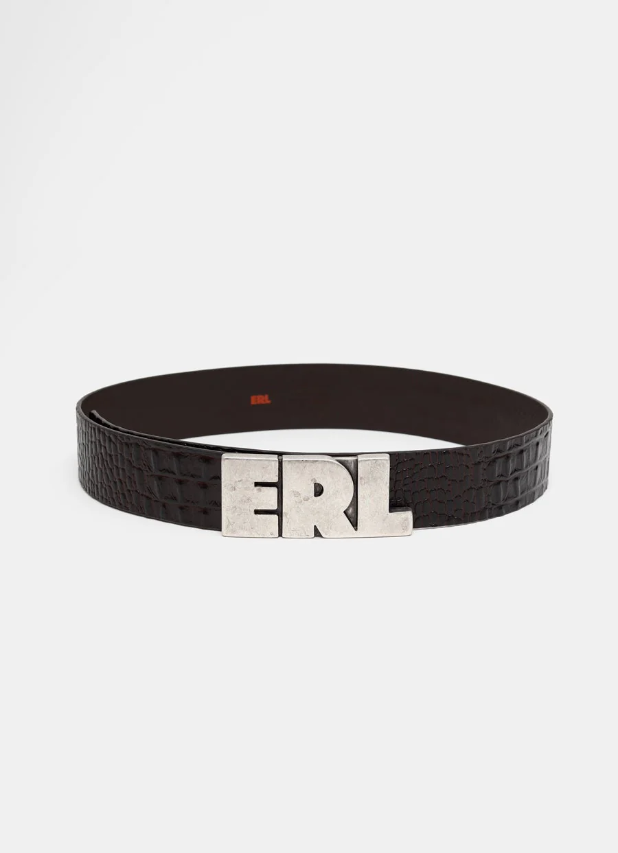 Cintur贸n ancho de ERL en piel de vacuno con efecto cocodrilo y hebilla de lat贸n en forma de logo. 5 cm de ancho. Largo total: 98 cm. Hecho en Italia.
