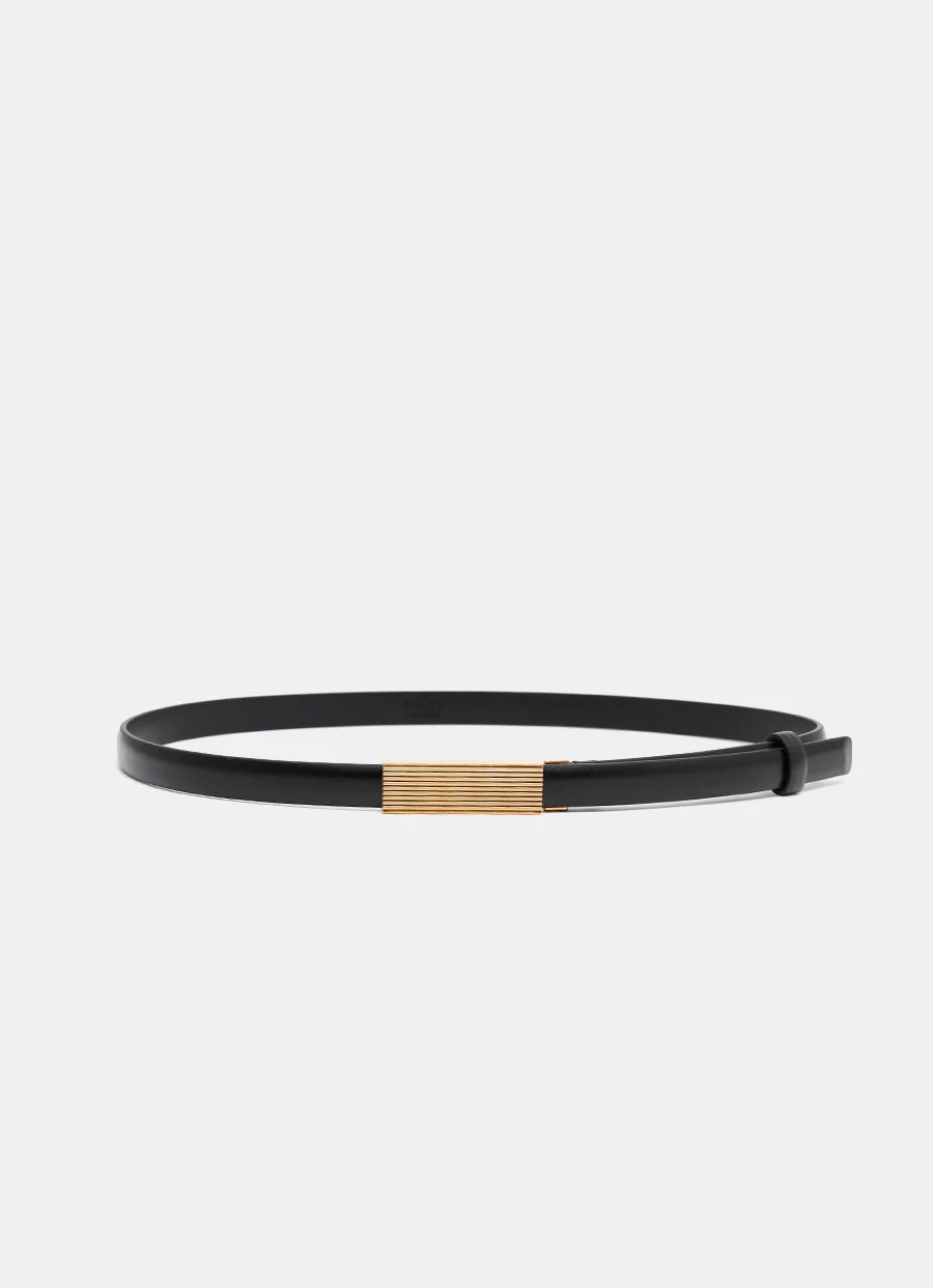 Cintur贸n de Khaite en piel de becerro con trabilla y hebilla de lat贸n chapada en oro de 18 quilates con sistema de sujeci贸n sin agujeros. Hecho en Italia. Tallaje cintur贸n UE. Tama帽o: 1.5 cm de ancho.