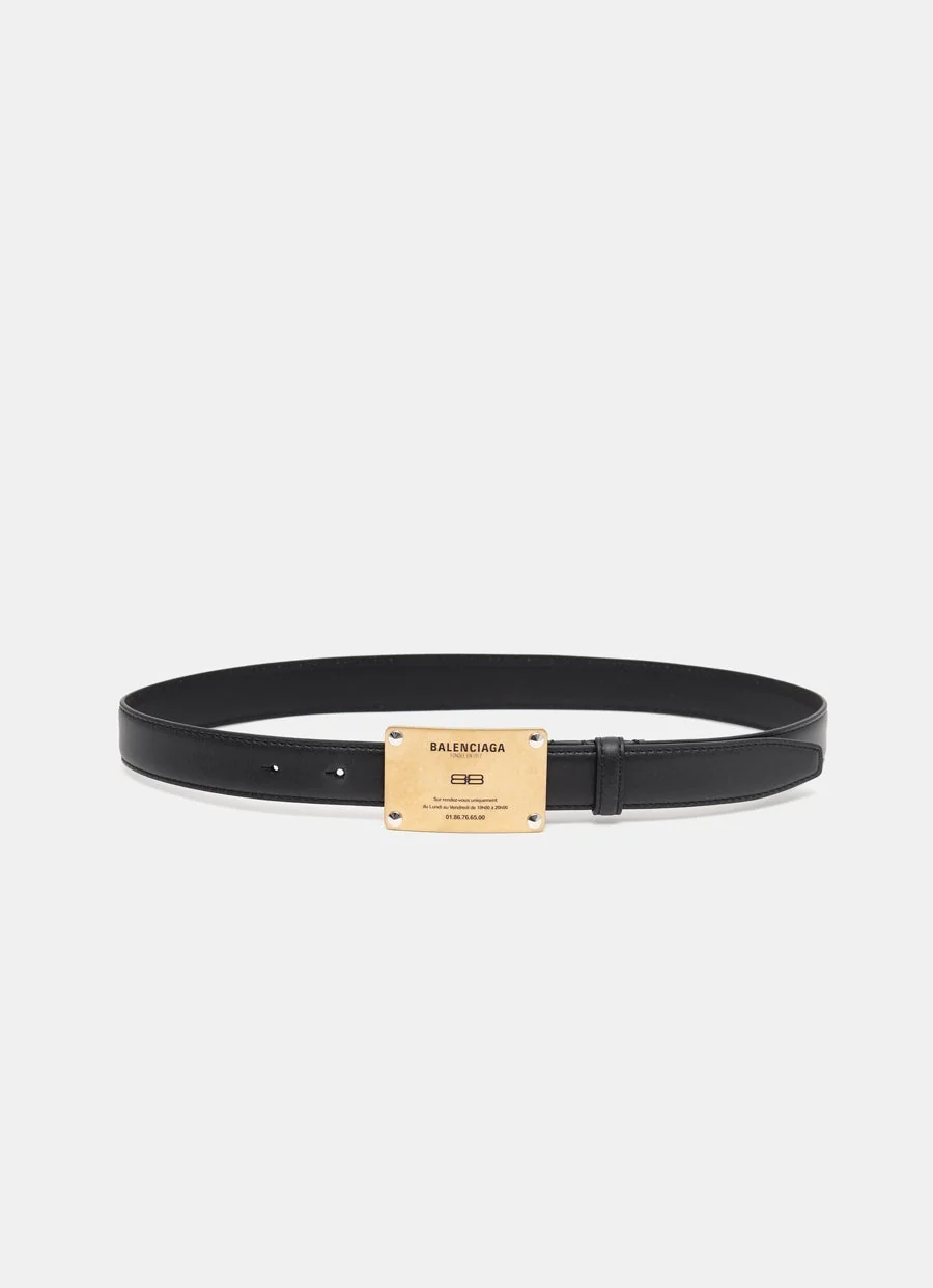 Cintur贸n de Balenciaga en piel de becerro con hebilla en forma de placa dorada con logo grabado. Tama帽o: 2.5 cm de ancho. Hecho en Italia. Tallaje de cintur贸n UE. Elige el largo en el selector de tallas (mostrado en cm).