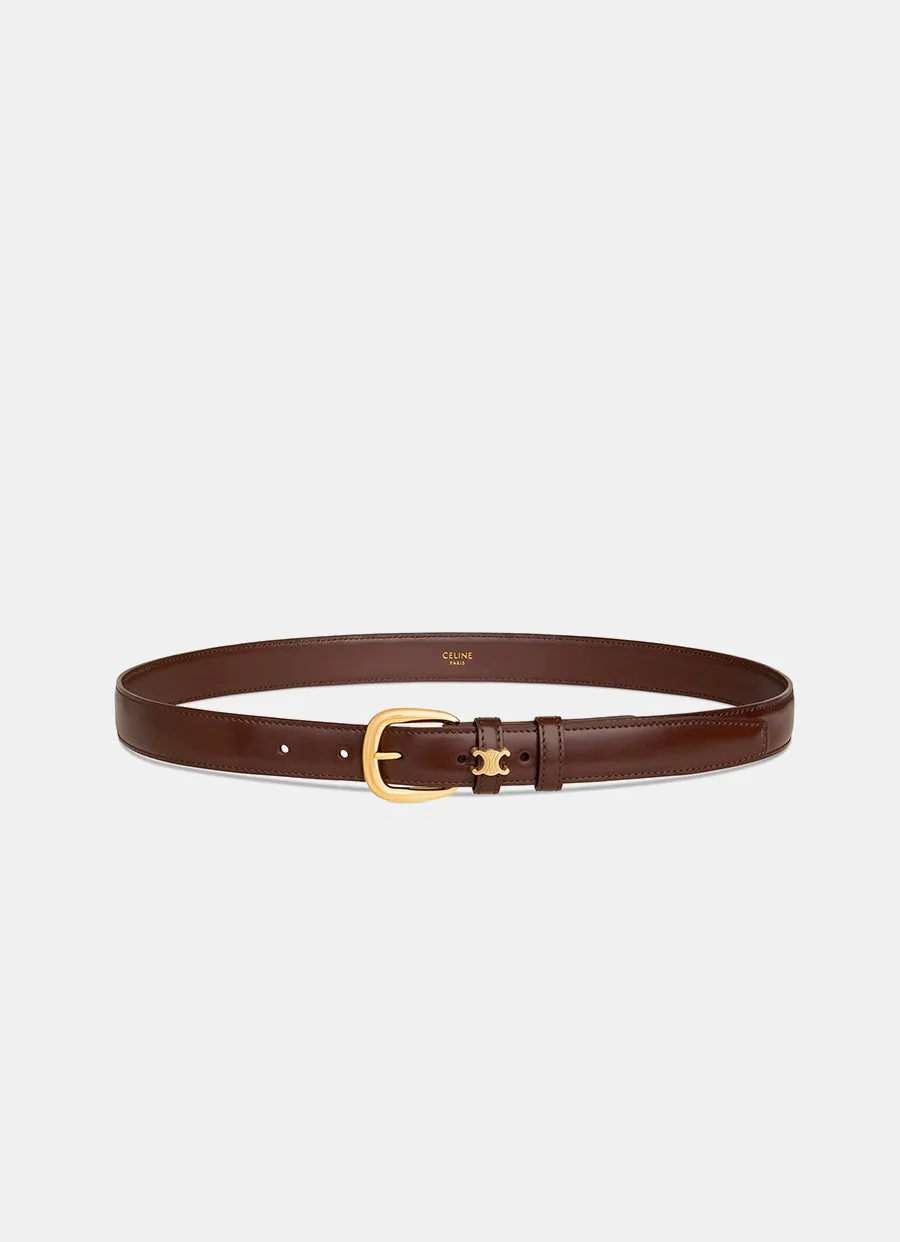 Cintur贸n de Celine de cintura media en piel Taurillon con hebilla redondeada, anilla met谩lica Triomphe alrededor de la primera trabilla y forro de piel de becerro. Hecho en Italia. Tallaje de cintur贸n UE. Elige el largo en el selector de tallas mostrado en cm.