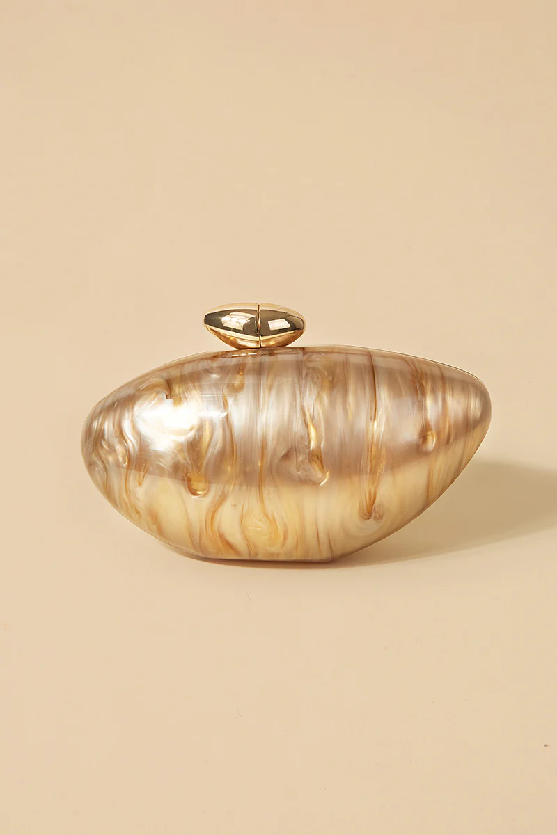 Bolso de fiesta para invitadas tipo caja en forma de concha.