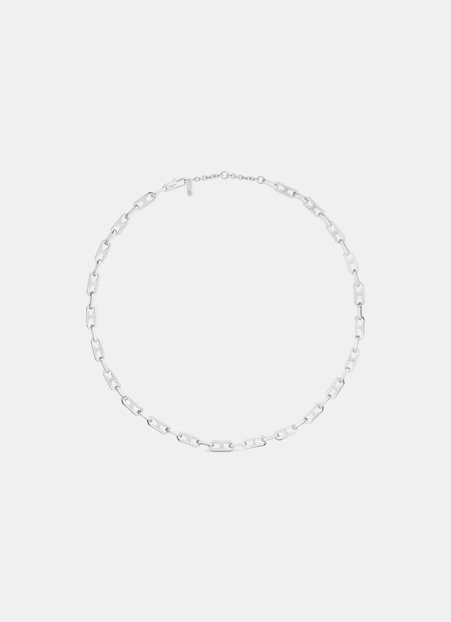 Collar de Celine en latón con acabado rodiado, con la firma Celine Paris Triomphe grabada, sin níquel y cierre de mosquetón. Hecho en Italia. Largo total: 48,5cm.