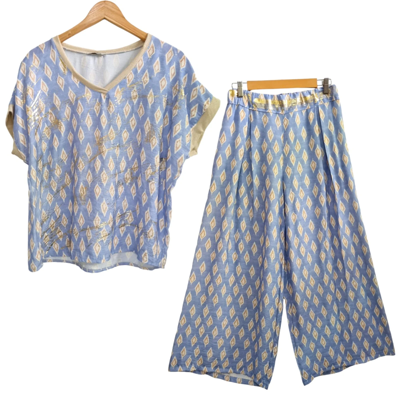 Conjunto de blusa y pantalón, 100% algodón, color celeste.