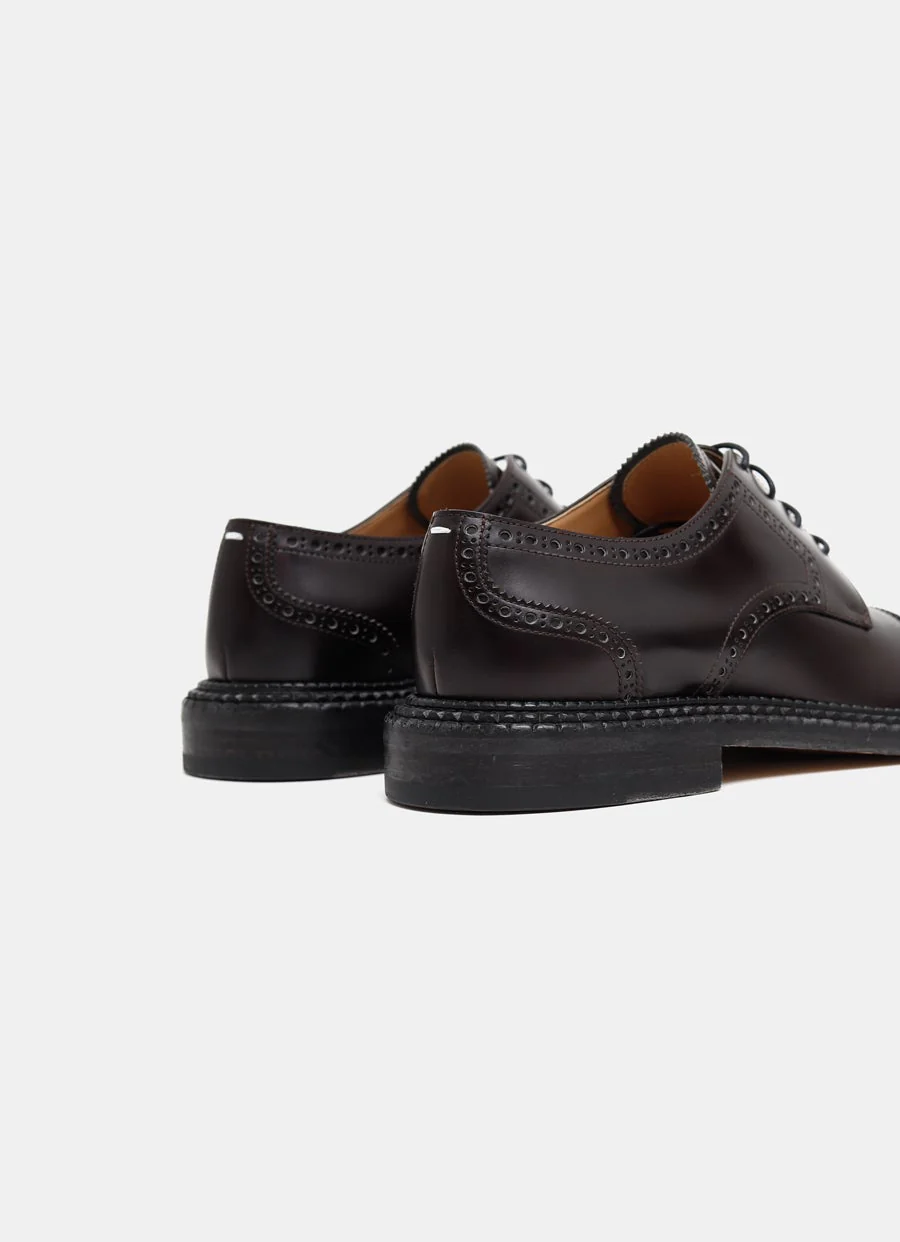 Zapato Derby de Maison Margiela con el clásico split-toe, Ajuste con cordones y detalle de puntada blanca en el talón. Forro de piel. Hecho en Italia. Talla normal, elige tu talla habitual. Tallaje UE para hombre.