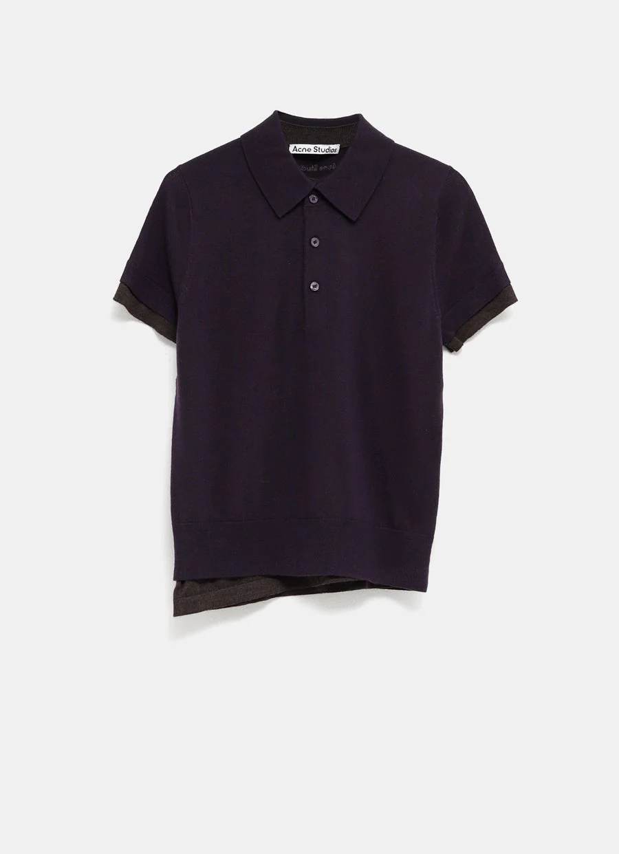 Polo de Acne Studios en lana con mangas cortas, cierre de botones, construcción en capas, detalles en contraste y ribete acanalado. Corte regular, largo hasta la cadera. Talla normal, elige tu talla habitual. Tallaje estándar para mujer.