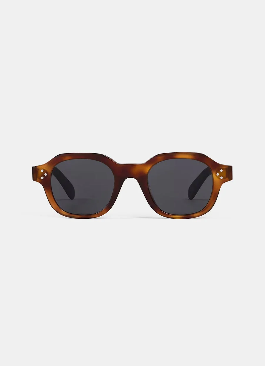 Gafas de sol de Celine con montura redonda de acetato, tres puntos y la firma de Celine en las patillas. Protección UVA y UVB. Ajuste universal. Hecho en Italia. Dimensiones: Longitud de patilla: 15cm. Puente nasal: 2,2cm. Ancho de lente: 4,8cm.