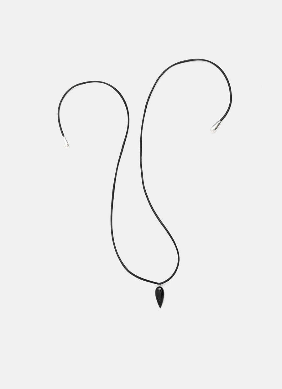 Delicado collar de Sophie Buhai con colgante de lanza de ónix en cordón ajustable de cuero vegano y detalles en plata de ley. Colgante: 1,7 x 0,5 x 0,6cm. Largo: 66cm. Hecho en Los Ángeles.