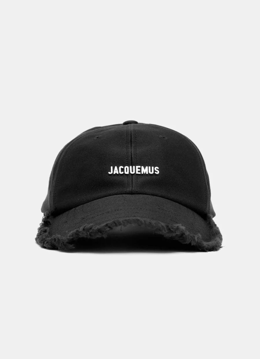 Gorra impermeable de Jacquemus con logo metálico, cordón ajustable, visera curva con borde deshilachado y tira ajustable con hebilla de metal. Elegir circunferencia en cm en el selector de tallas.