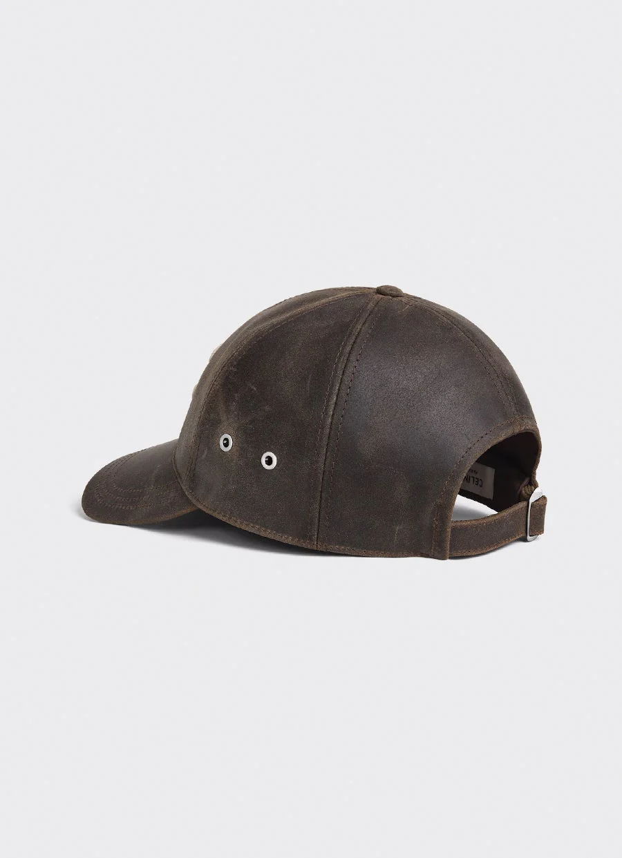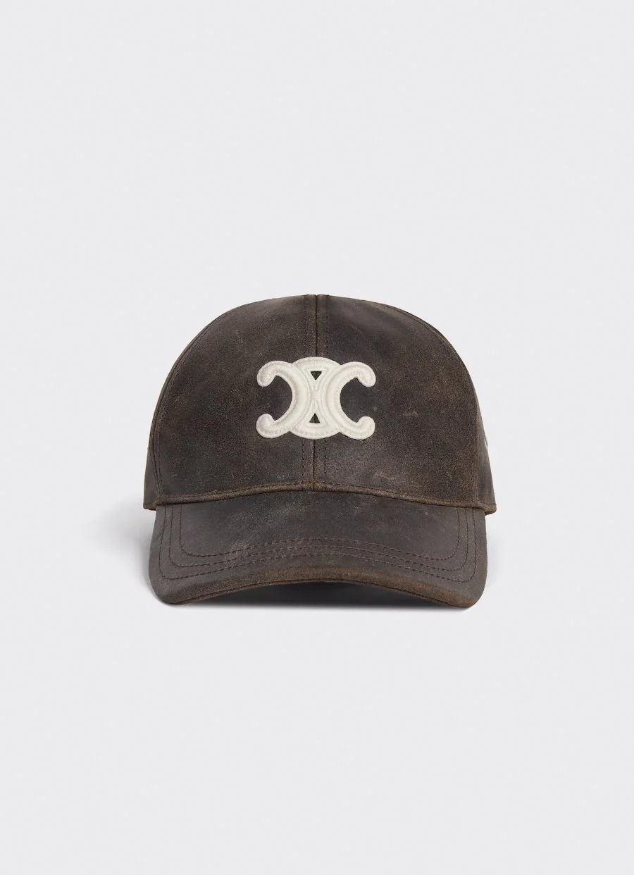 Gorra de béisbol de Celine de piel de becerro encerada con parche Triomphe, diseño hexagonal y lengüeta trasera ajustable con hebilla. Hecho en Italia. Talla normal, elige tu talla habitual. Tallaje estándar para hombre.