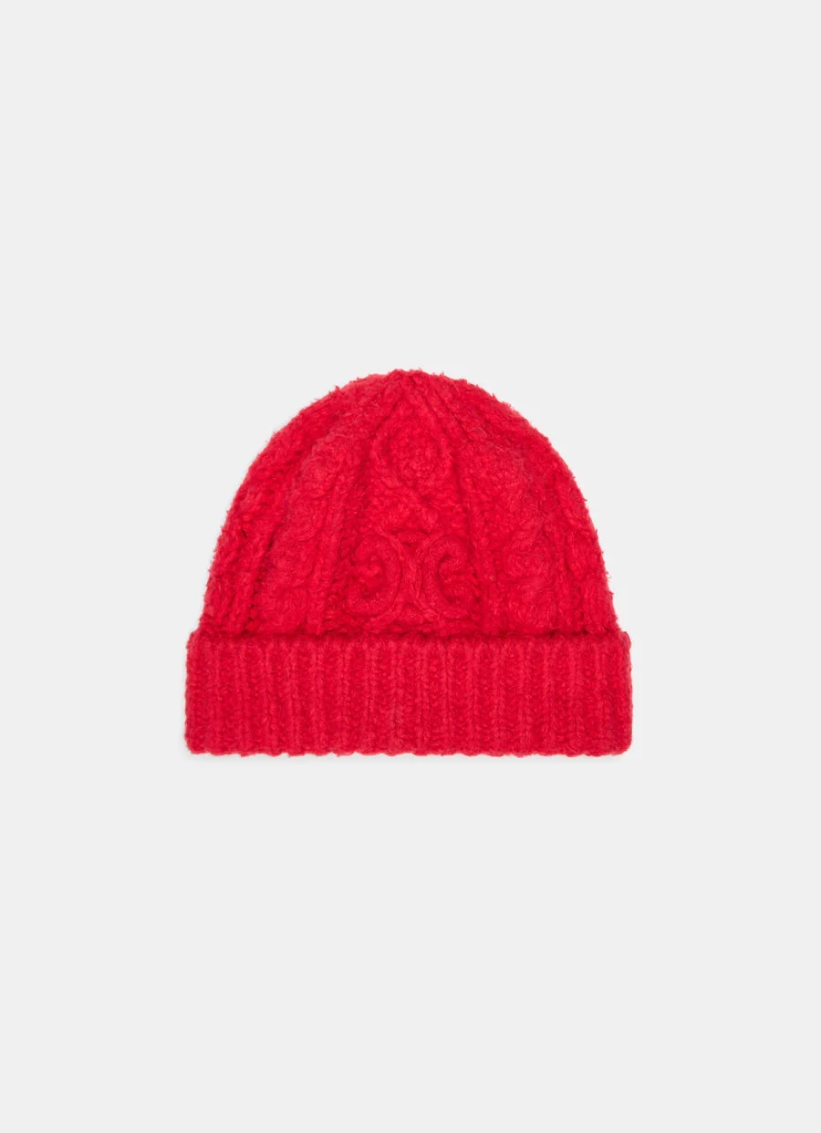 Gorro de Celine en algodón Aran cepillado con bordado Triomphe. Hecho en Italia. Talla única.