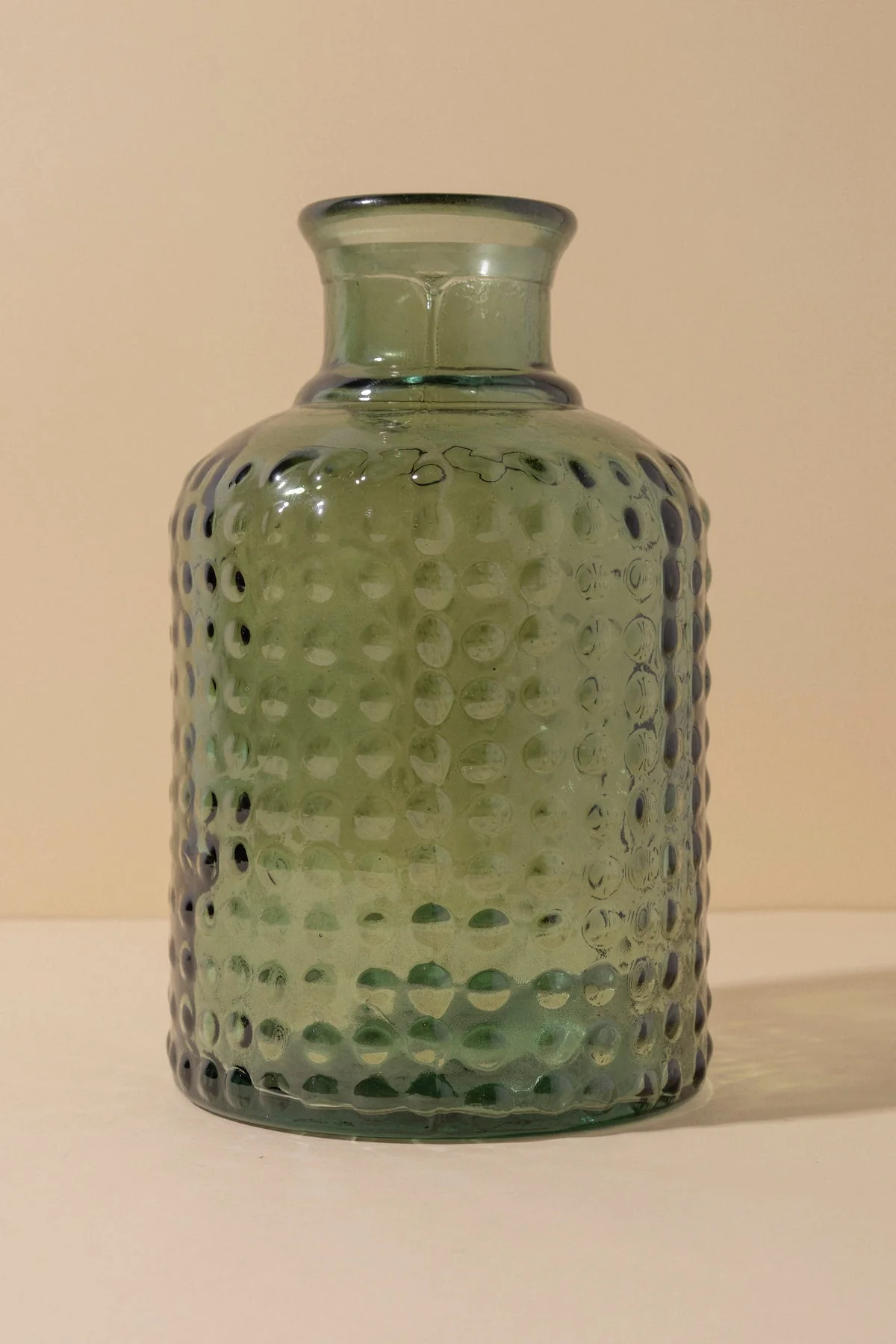 Jarr贸n realizado en vidrio reciclado grabado con puntitos.