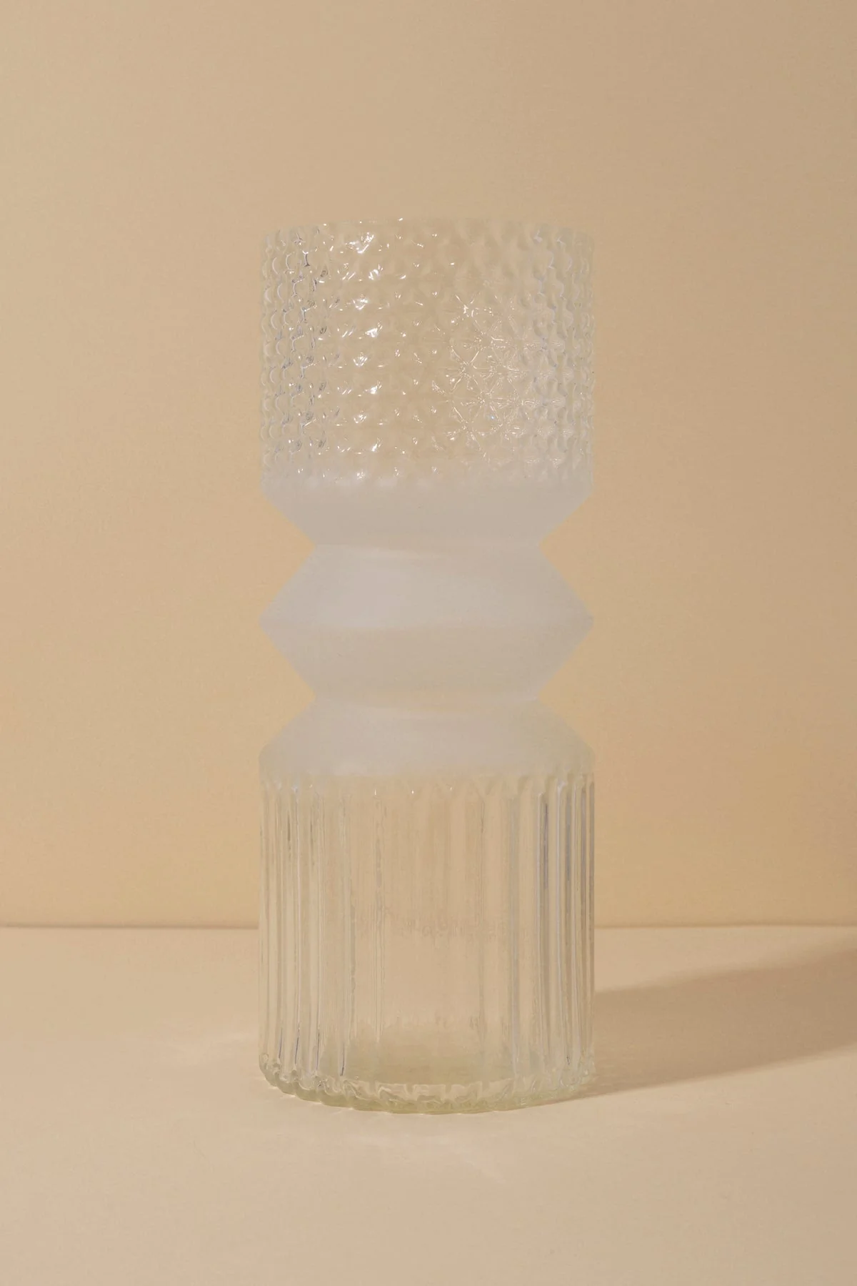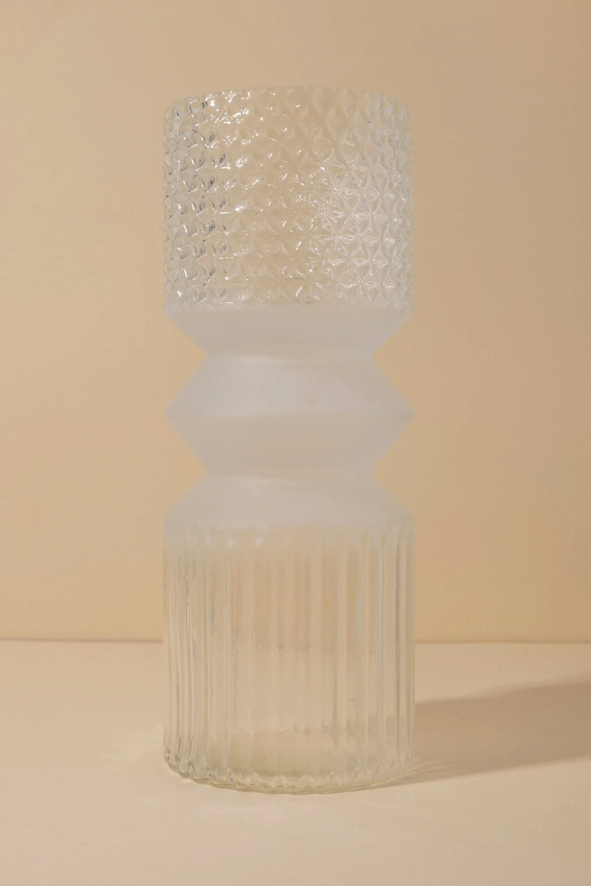 Jarr贸n realizado en vidrio reciclado grabado con textura y dibujo de rombos.