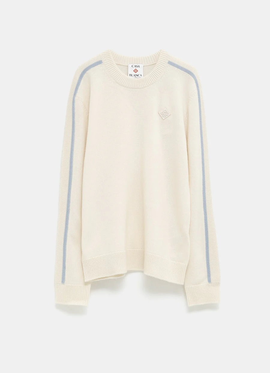 Jersey de Casablanca en punto mezcla de lana y cashmere. Con cuello redondo, manga con rayas, elásticos de canalé y parche con logo en el pecho. Corte regular. Talla normal, elige tu talla habitual. Tallaje estándar para hombre.