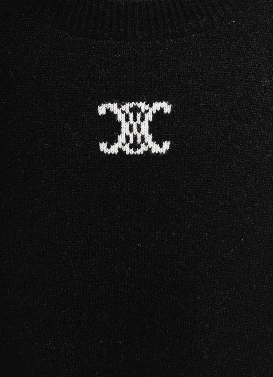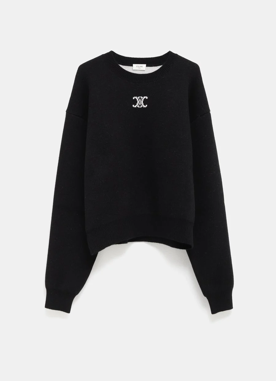 Jersey de Celine en cashmere con cuello redondo, hombros caídos, ribetes acanalados y jacquard Triomphe en la parte delantera. Corte clásico. Hecho en Italia. Talla normal, elige tu talla habitual. Tallaje estándar para hombre.