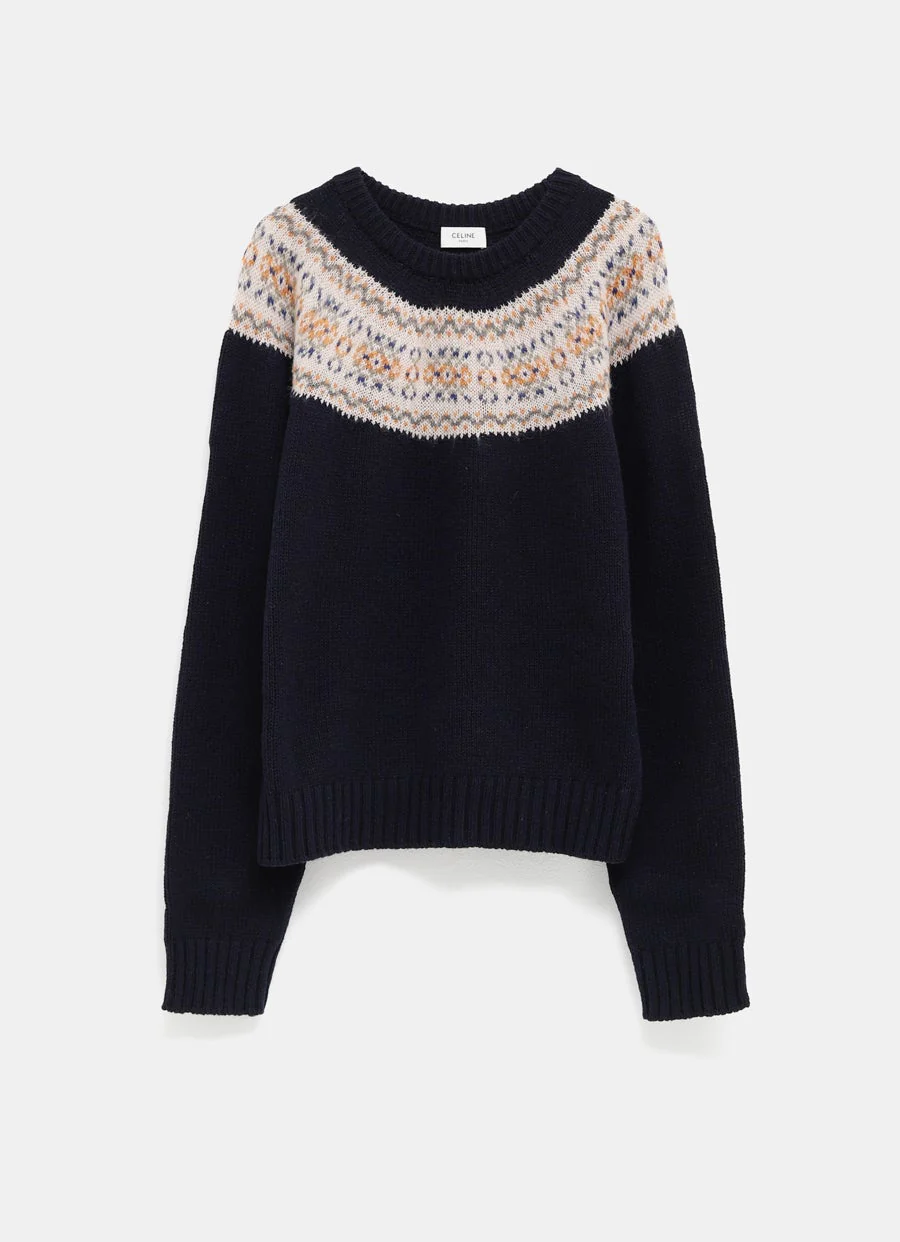 Jersey de Celine en jacquard de lana Fair Isle con cuello redondo, mangas raglán largas y ribete de canalé. Corte clásico. Hecho en Italia. Talla normal, elige tu talla habitual. Tallaje estándar para hombre.