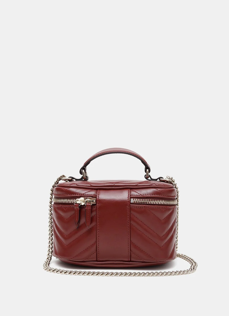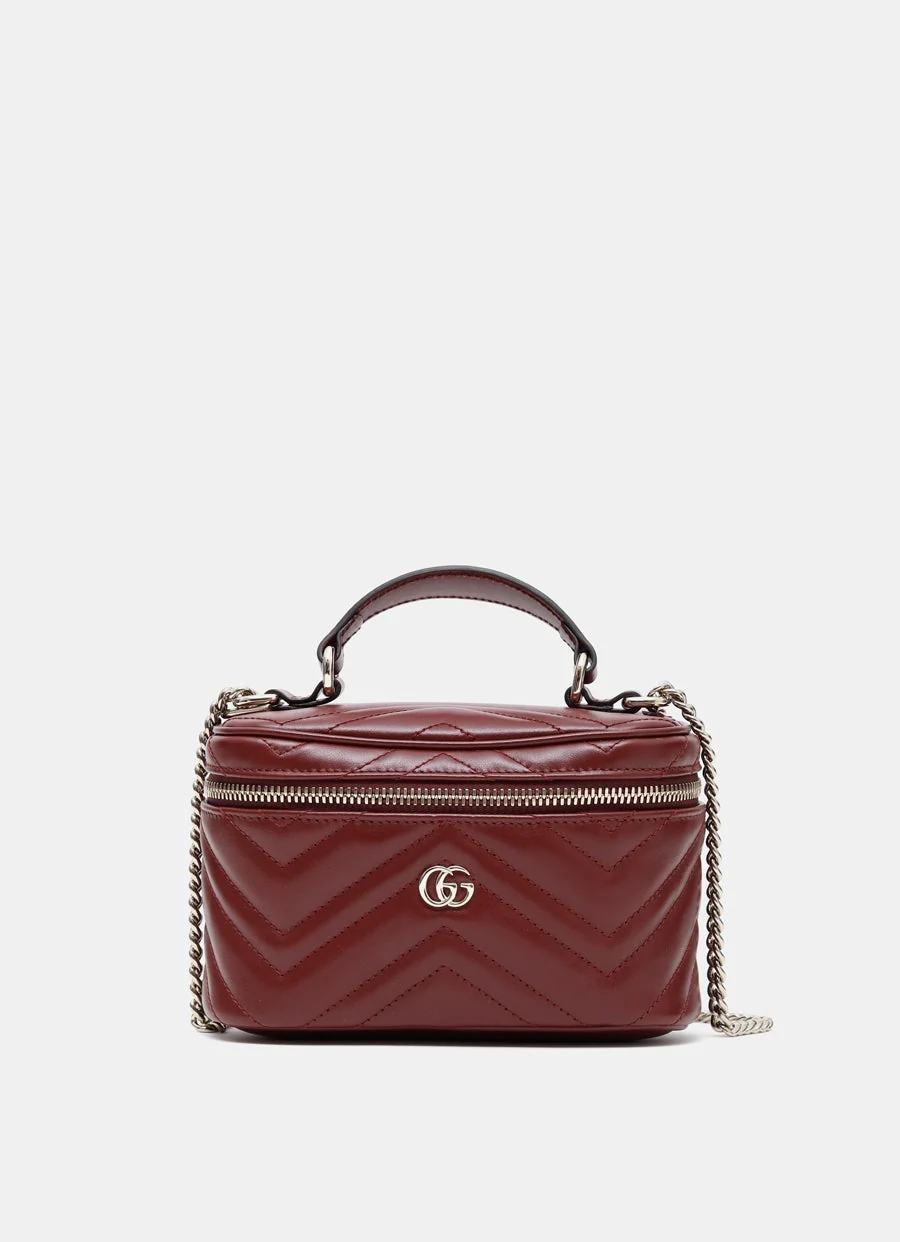 Bolso mini de Gucci en piel matelassé con motivo chevron acolchado, apliques dorados y forro de tafetán. Detalle Doble G, cierre con cremallera, asa de 6 cm de caída y correa de cadena para el hombro de 55 cm. Hecho en Italia. Tamaño: 19 x 11.5 x 9 cm.