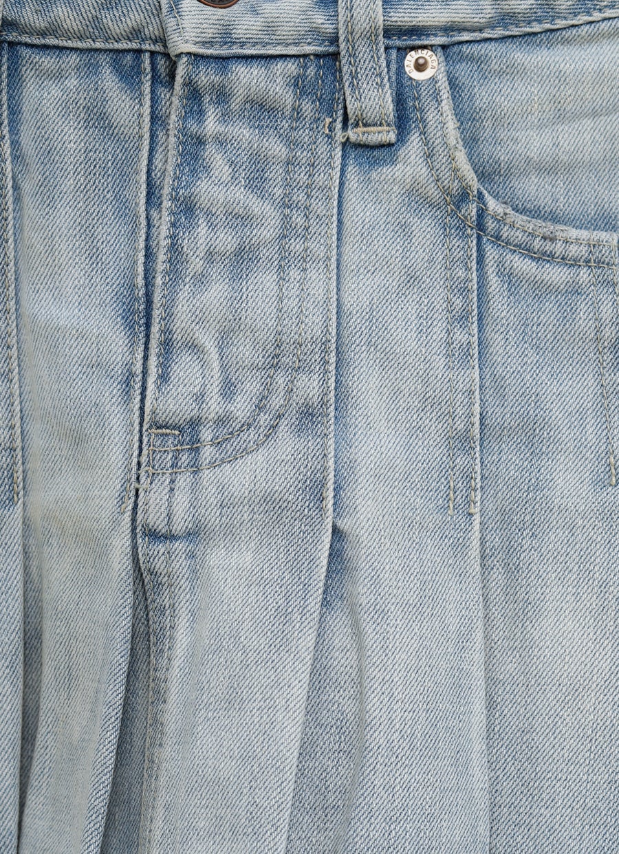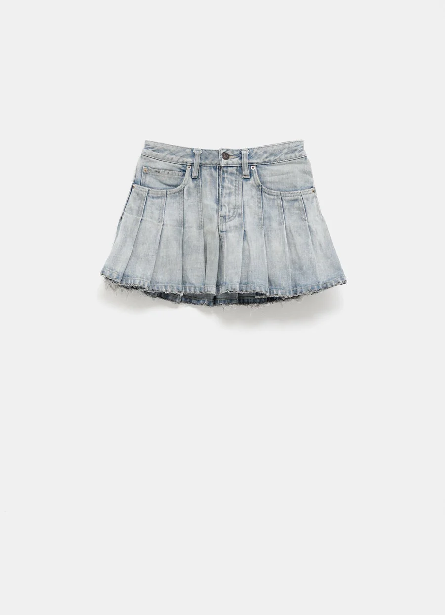 Minifalda plisada de Balenciaga en denim de algodón con detalles desgastados, bragueta con cremallera oculta, cinco bolsillos y trabillas. Hecho en Italia. Talla normal, elige tu talla habitual. Tallaje UE para mujer.