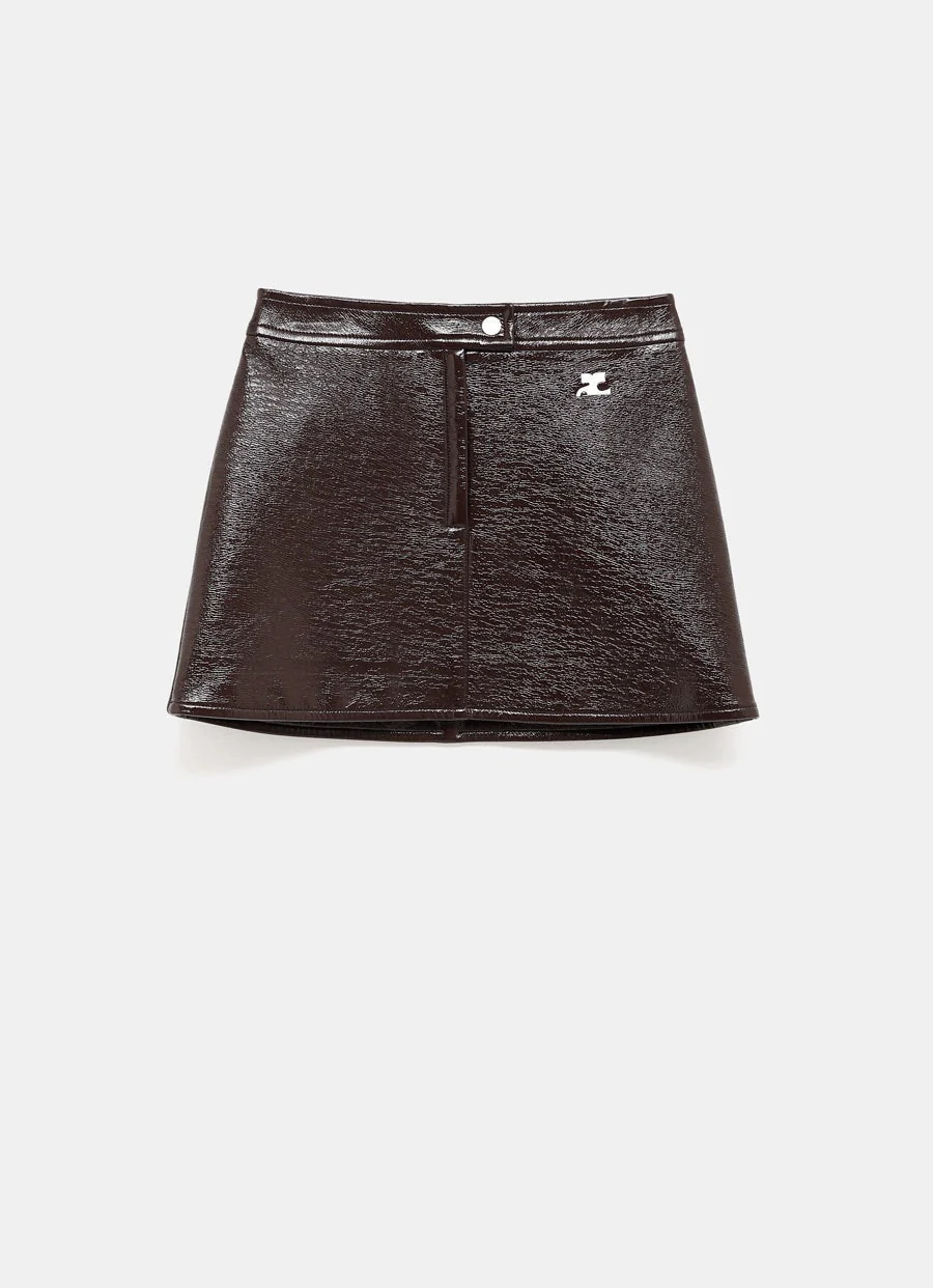 Minifalda de Courrèges con cierre de cremallera y botón en la parte delantera, logo bordado y forro de cupro. Tallaje francés.