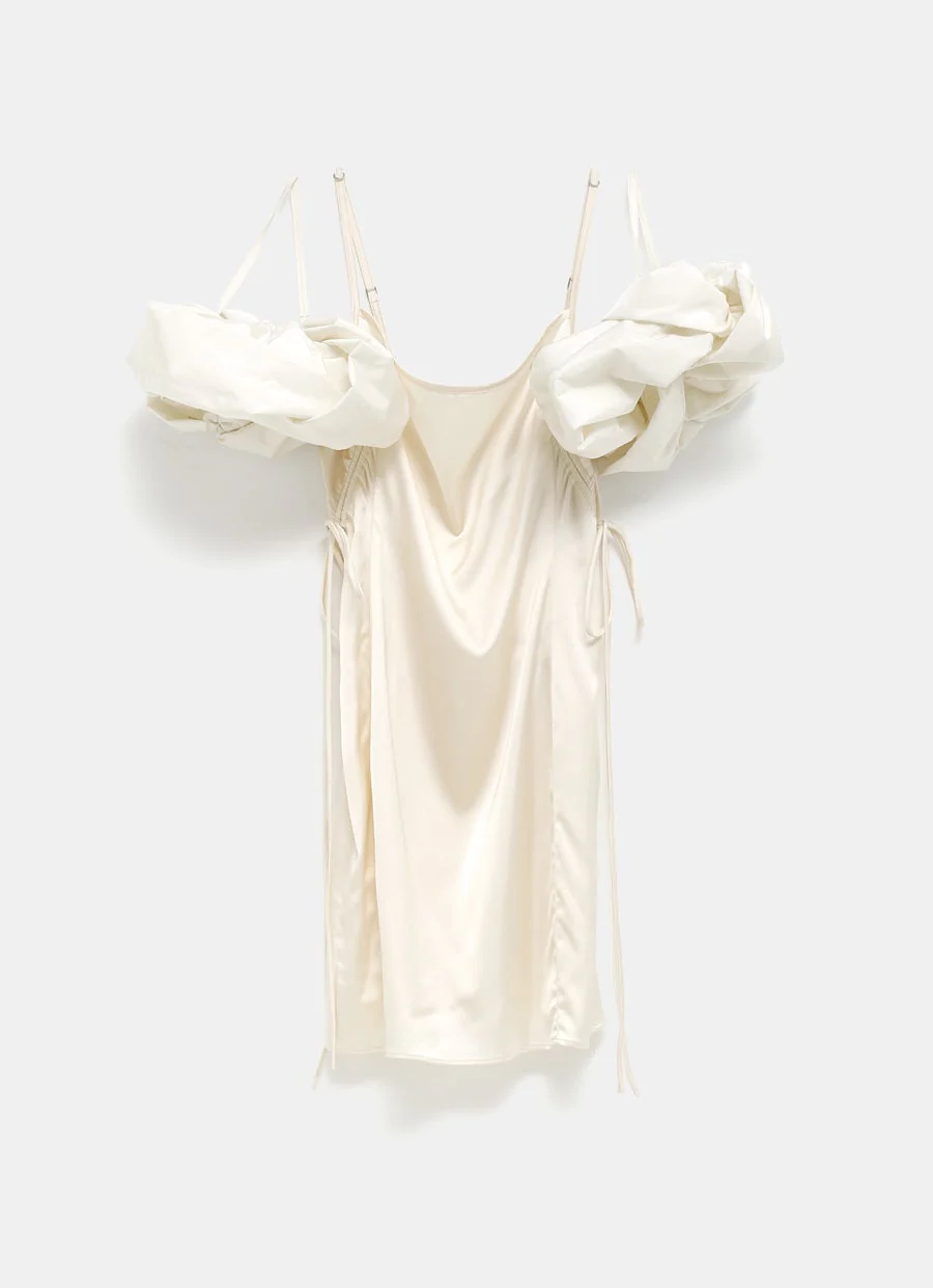 Vestido mini de Jacquemus parte de la colección Le Chouchou. De corte ajustado, escote cuadrado, mangas abullonadas extraíbles, tirantes finos ajustables, y cordón en la cintura. Cierre de cremallera invisible en el lateral. Hecho en Francia. Talla normal, elige tu talla habitual. Tallaje francés.