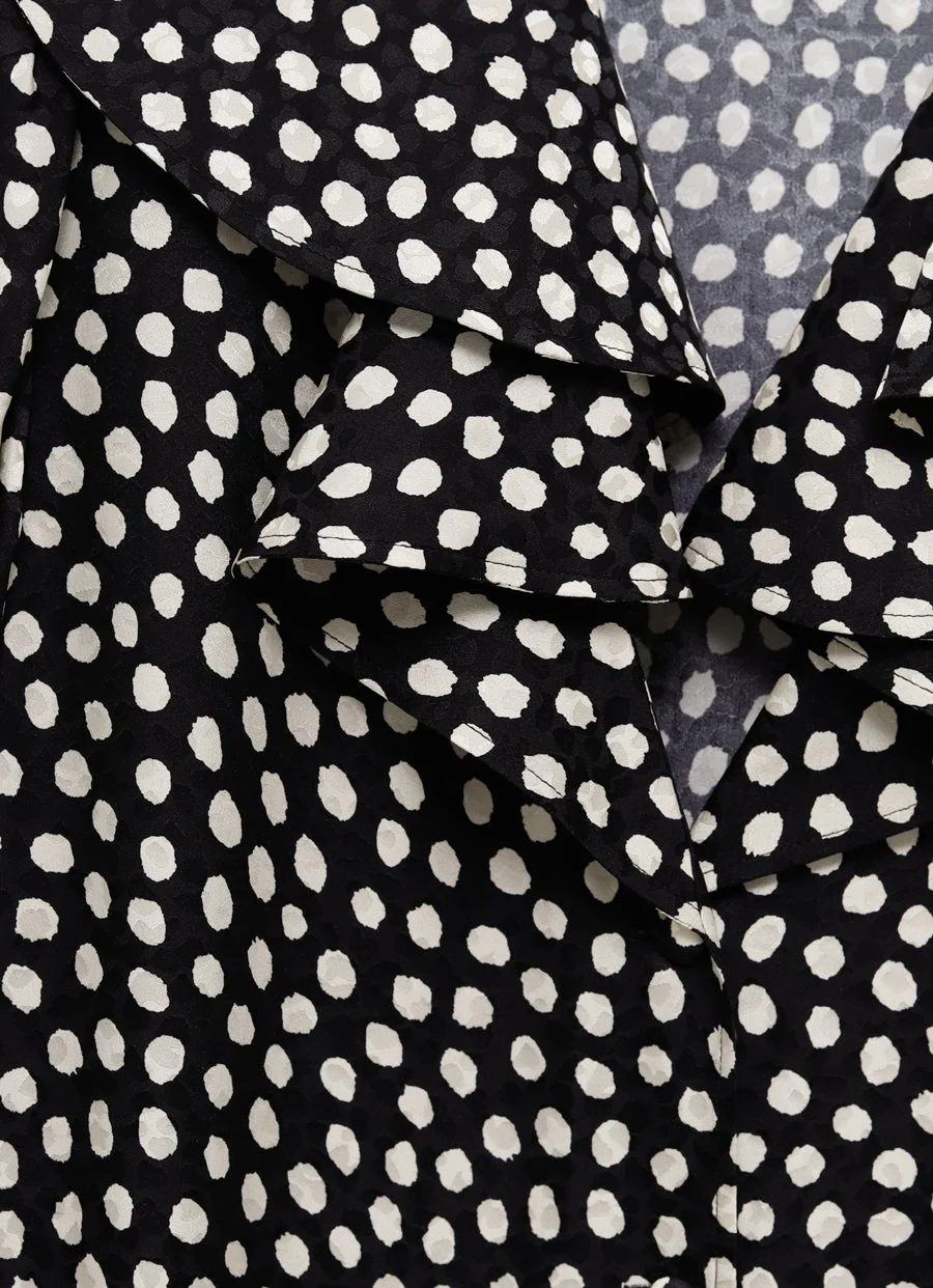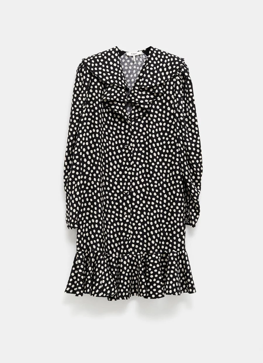 Minivestido de Chloé de manga larga en jacquard de seda con escote en V, estampado integral, volantes en el escote y botones forrados de tela. Hecho en Italia. Talla normal, elige tu talla habitual. Tallaje francés para mujer.