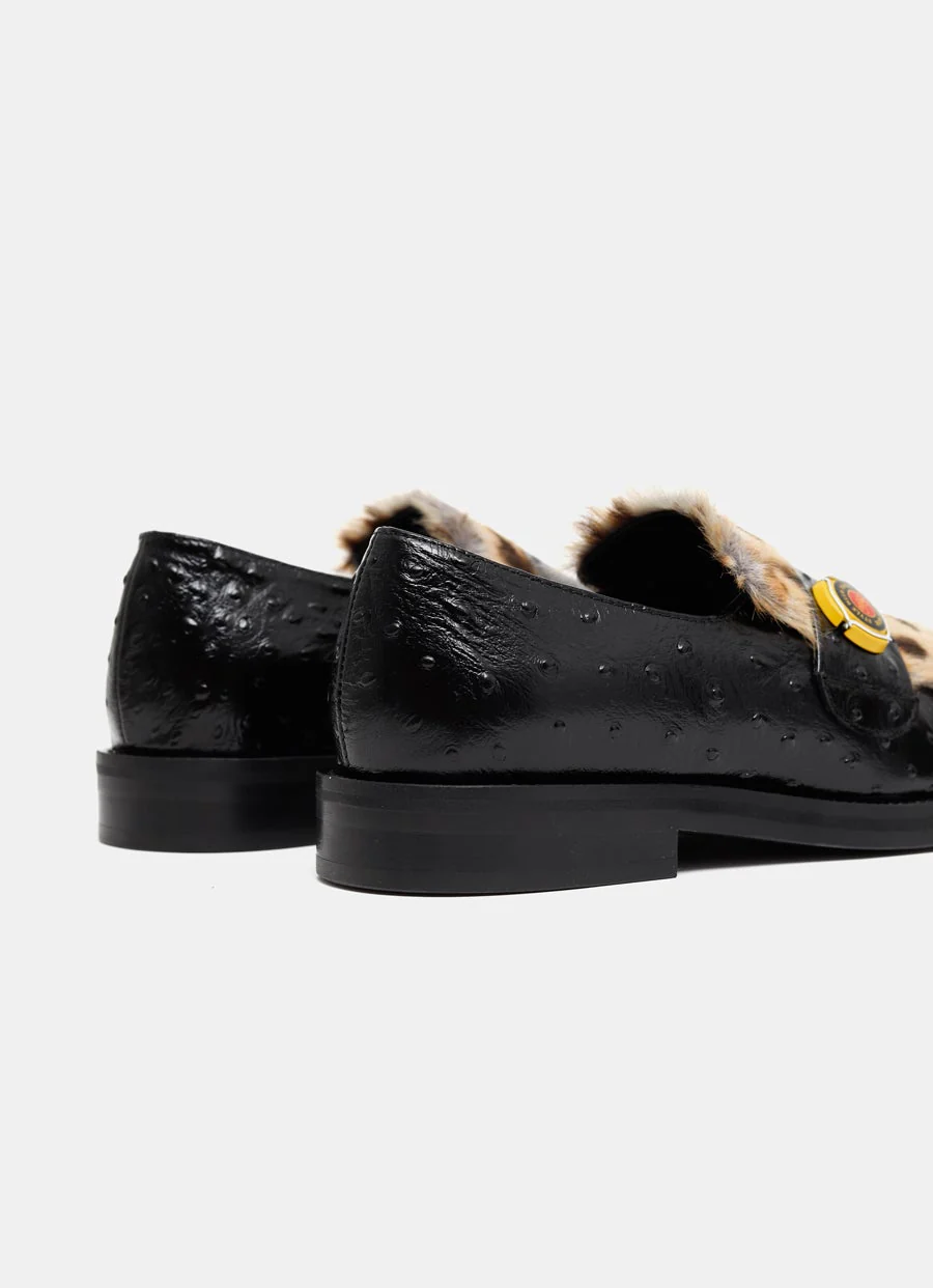 Mocasín de Martine Rose en piel de becerro con textura, puntera cuadrada, empeine efecto pelo y tacón de 3 cm Hecho en Portugal. Talla normal, escoge tu talla habitual. Tallaje italiano para hombre.