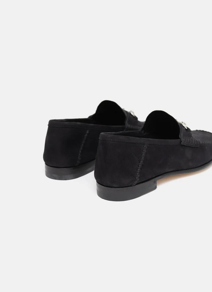 Mocasín de Gucci en ante con detalle Horsebit plateado, plantilla con amortiguación adicional, suela de piel flexible y tacón de 1,5 cm. Hecho en Italia. Talla normal, elige tu talla habitual. Tallaje italiano para mujer.