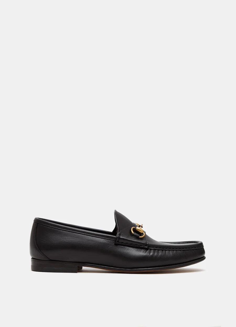 Mocasín de Gucci en piel con puntera redondeada y detalle Horsebit dorado, forro de piel y tacón de 1,5 cm. Hecho en Italia. Talla normal, elige tu talla habitual. Tallaje US para hombre.