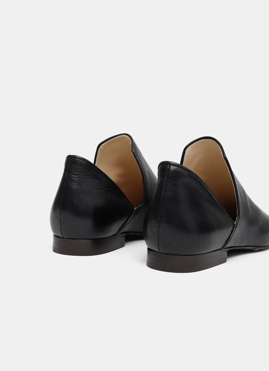 Mocasines de Lemaire en piel de becerro granulada con puntera cuadrada, sin cordones y estilo D’Orsay. Hecho en Portugal. Talla normal, elige tu talla habitual. Tallaje UE para mujer.