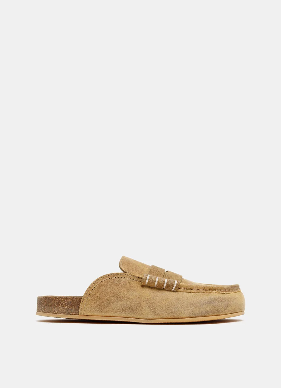 Mocasines tipo mule de JW Anderson en ante encerado con forro de piel de becerro, suela de goma y logotipo grabado. Hecho en Italia. Talla normal, elige tu talla habitual. Tallaje italiano para mujer.