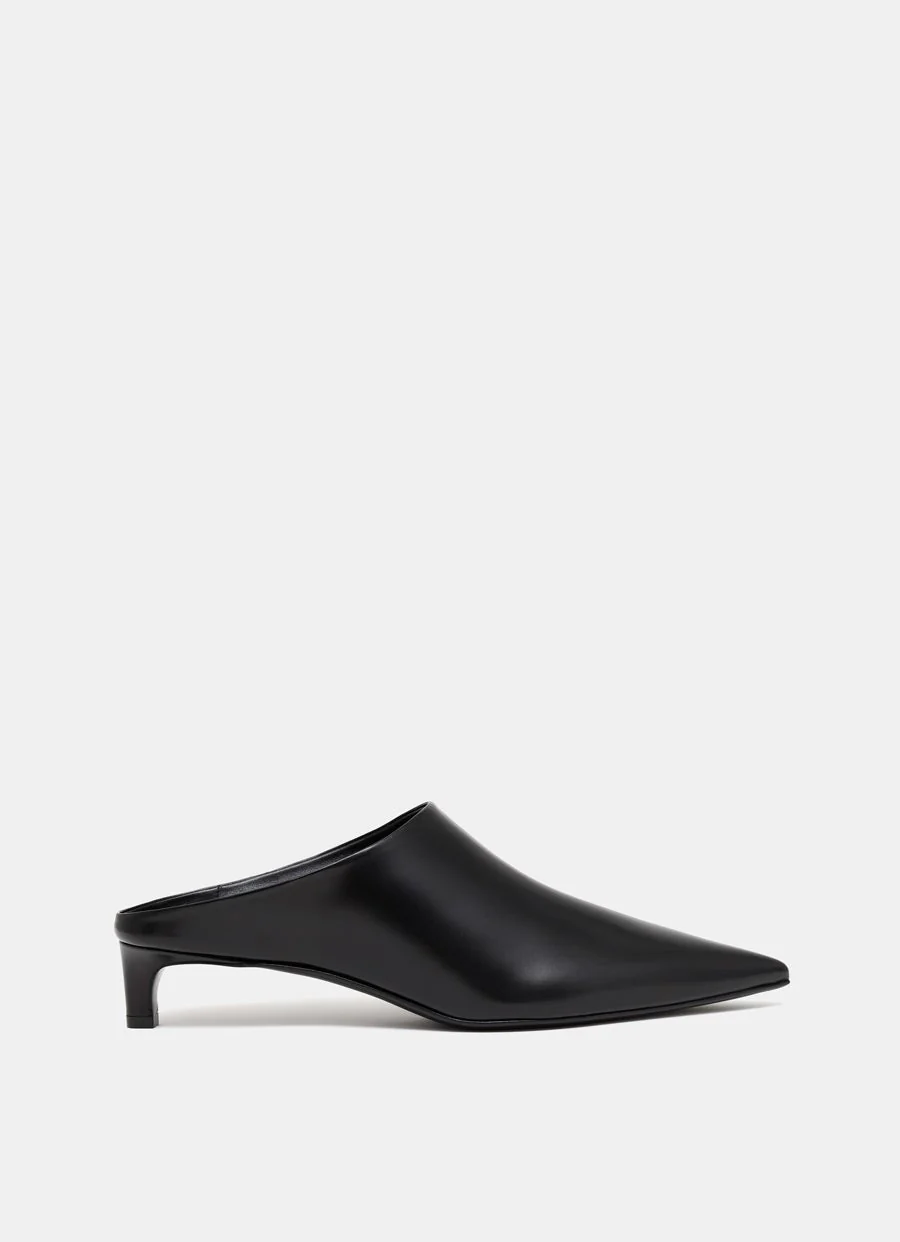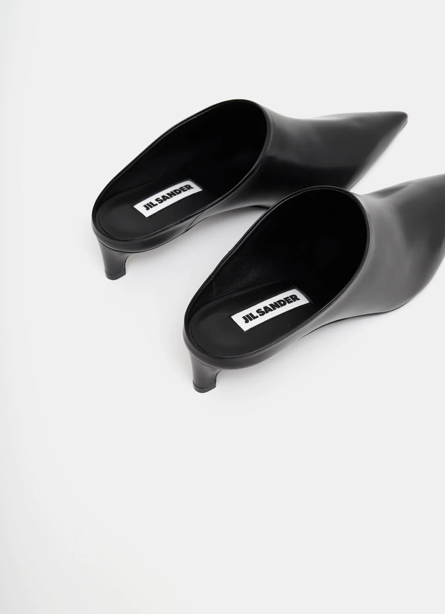 Mule de Jil Sander con puntera afilada, plantilla de piel con logo, forro de napa y tacón corto. Hecho en Italia. Talla normal, elige tu talla habitual. Tallaje UE.