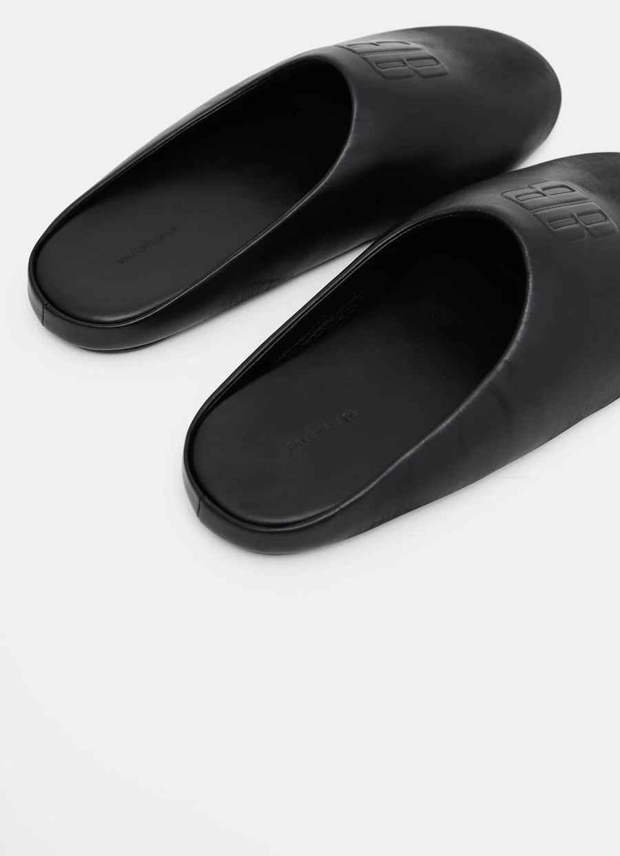 Mules de Balenciaga en piel de becerro supersuave con puntera redonda, efecto desgastado y plantilla y suela tono sobre tono. Logotipo nano BB de alta frecuencia en la parte superior. Hecho en Italia. Talla normal, elige tu habitual. Tallaje UE para hombre.