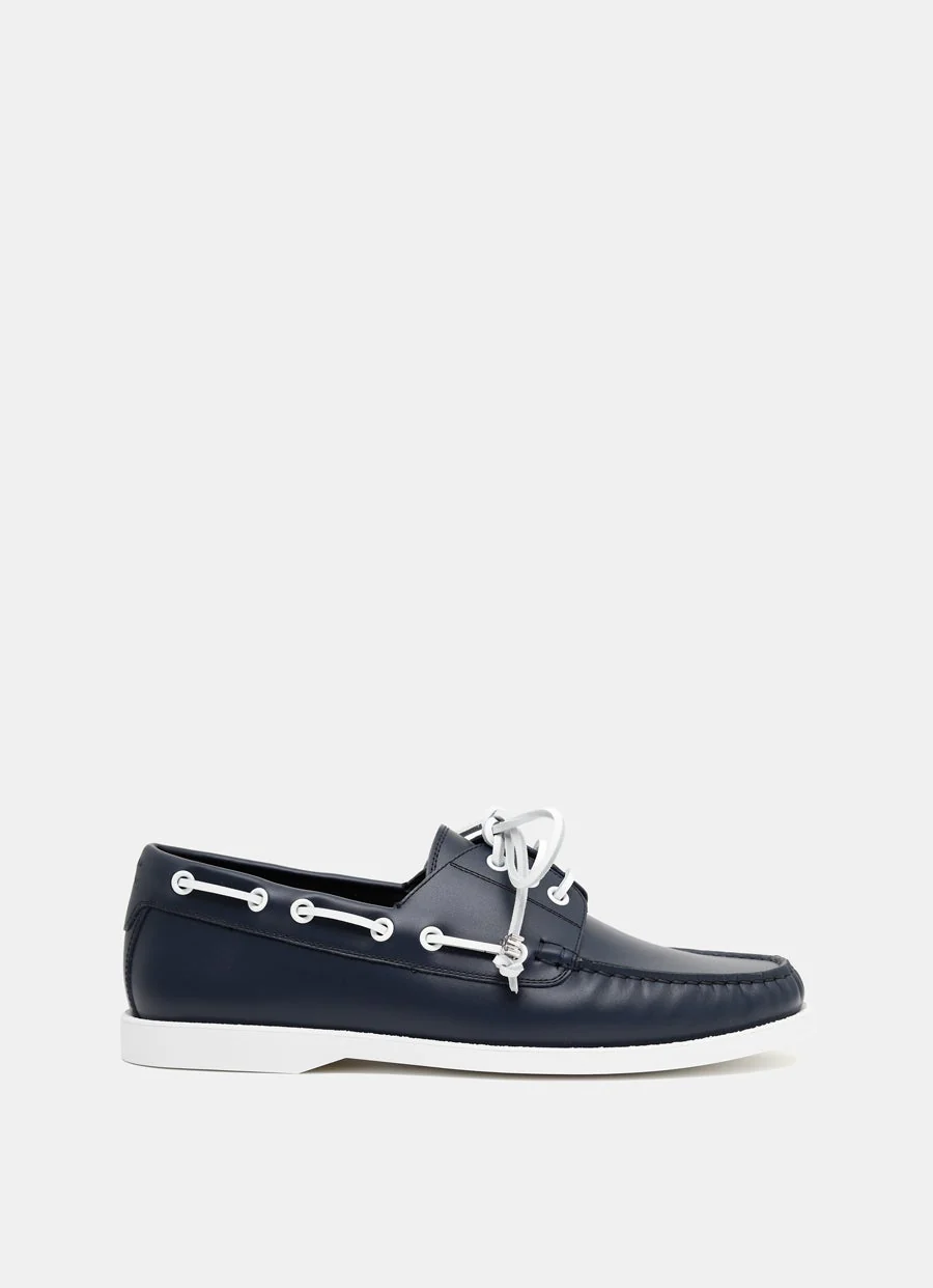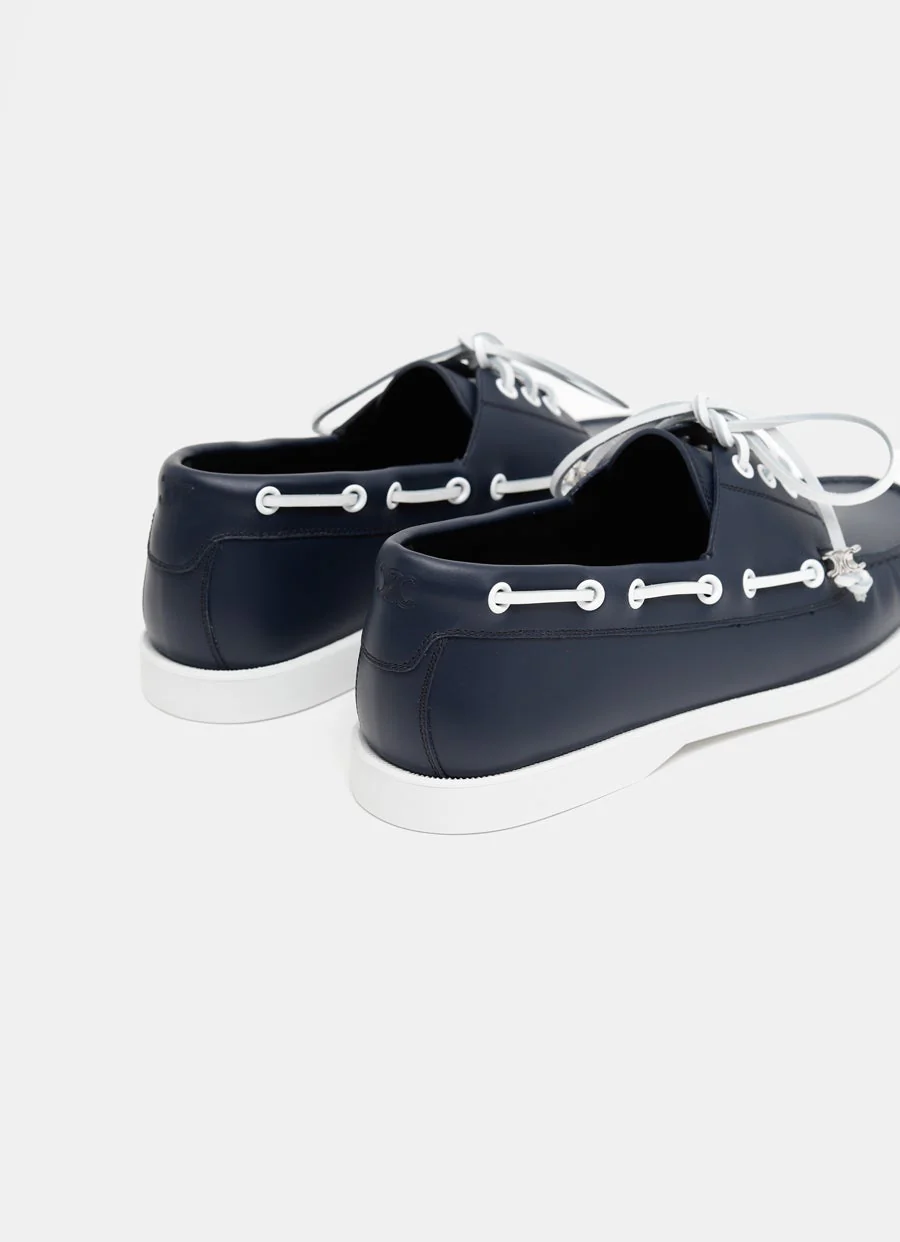 Náutico de Celine con punta redonda, cierre de cordones de piel en contraste con herrete metálico Triomphe y suela en contraste. Hecho en Italia. Talla normal, elige tu talla habitual. Tallaje italiano para hombre.