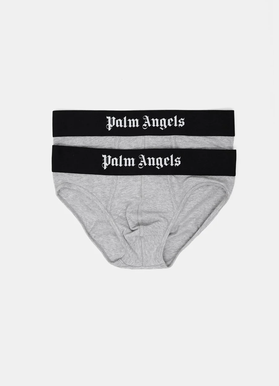 Pack de dos slips de Palm Angels con logo en la cintura elástica. Hechos en Italia. Talla normal, elige tu talla habitual.